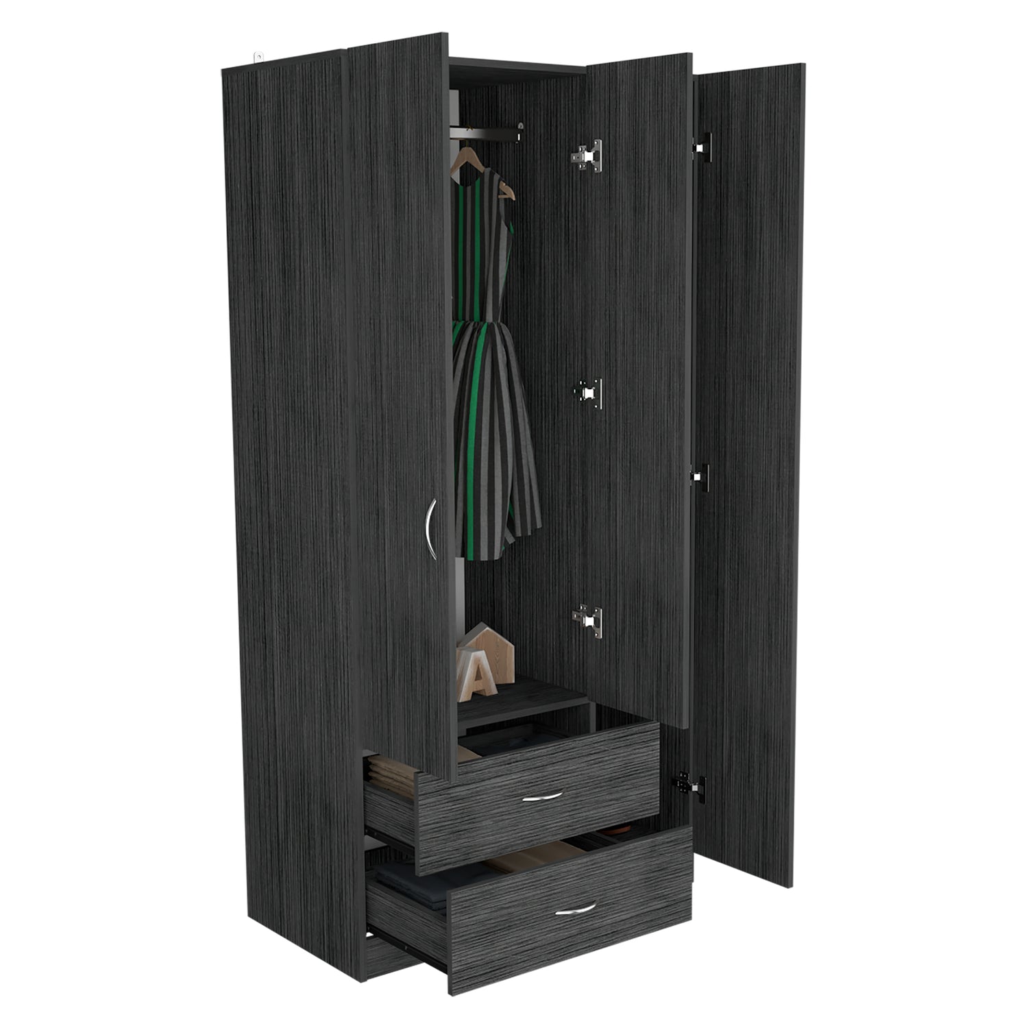 Closet Austral Roble Gris 90x180cm Con Dos Cajones y Tres Puertas