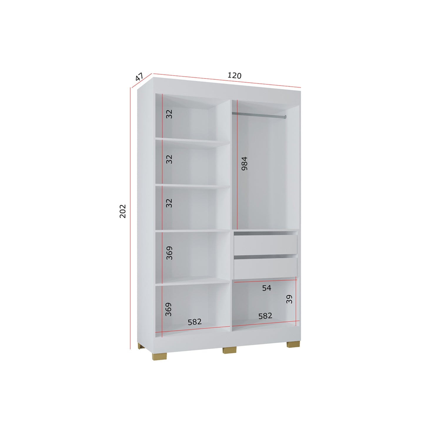 Closet Barcelona Blanco 120x202cm con Dos Cajones y con Cuatro Puertas
