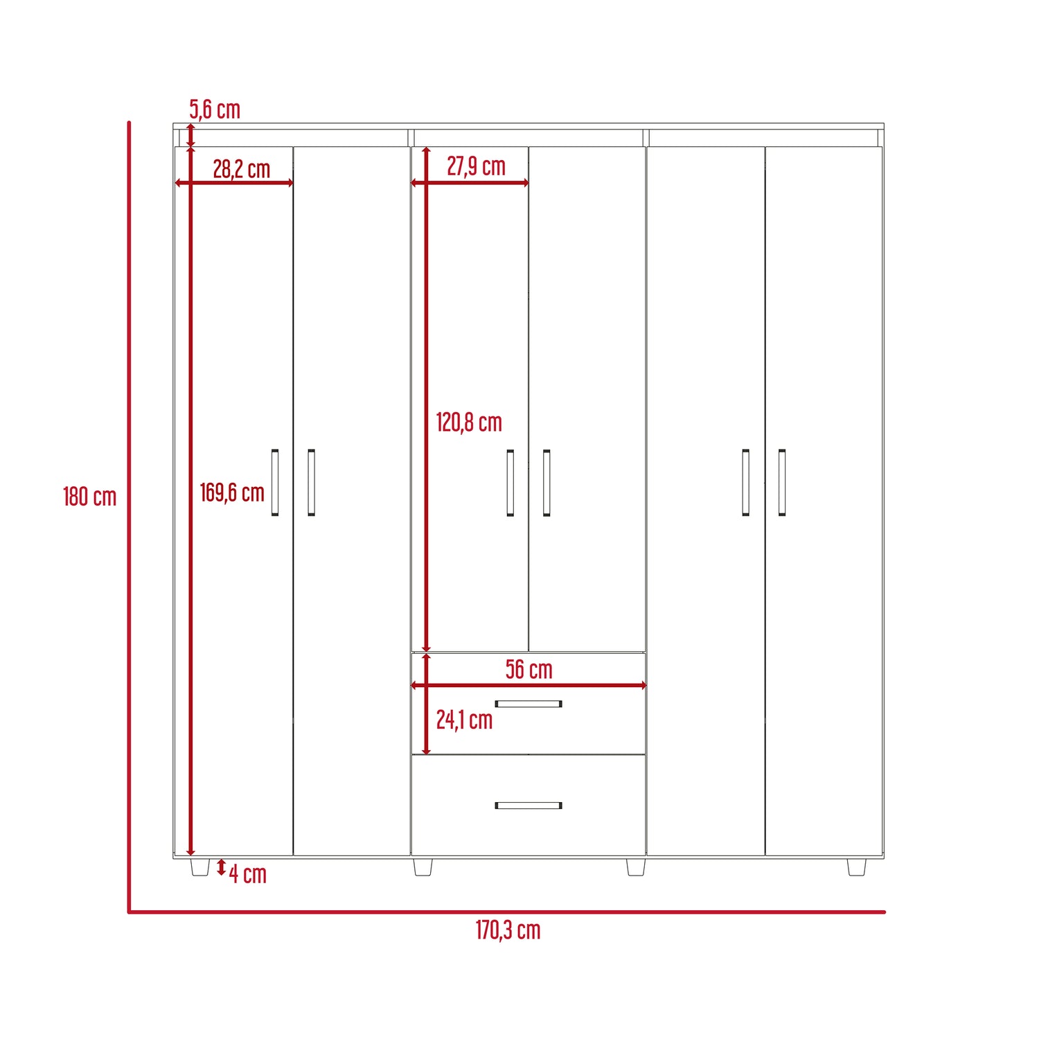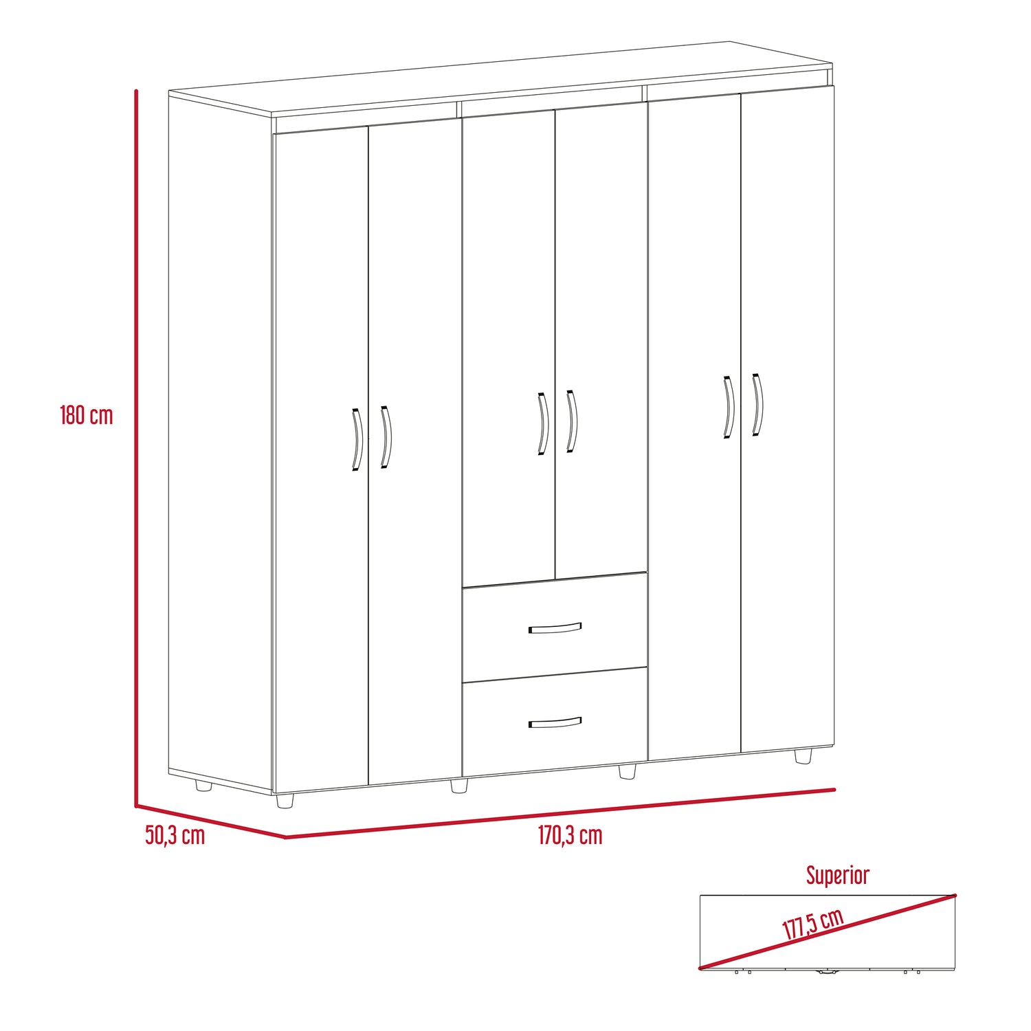 Closet Bariloche Blanco Positano 170.3x180cm con Seis Puertas y con Dos Cajones