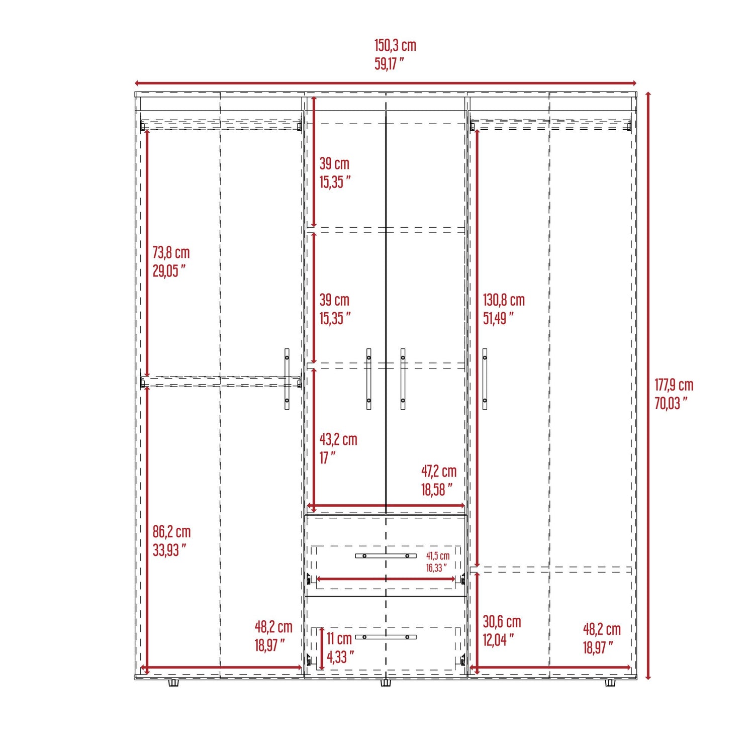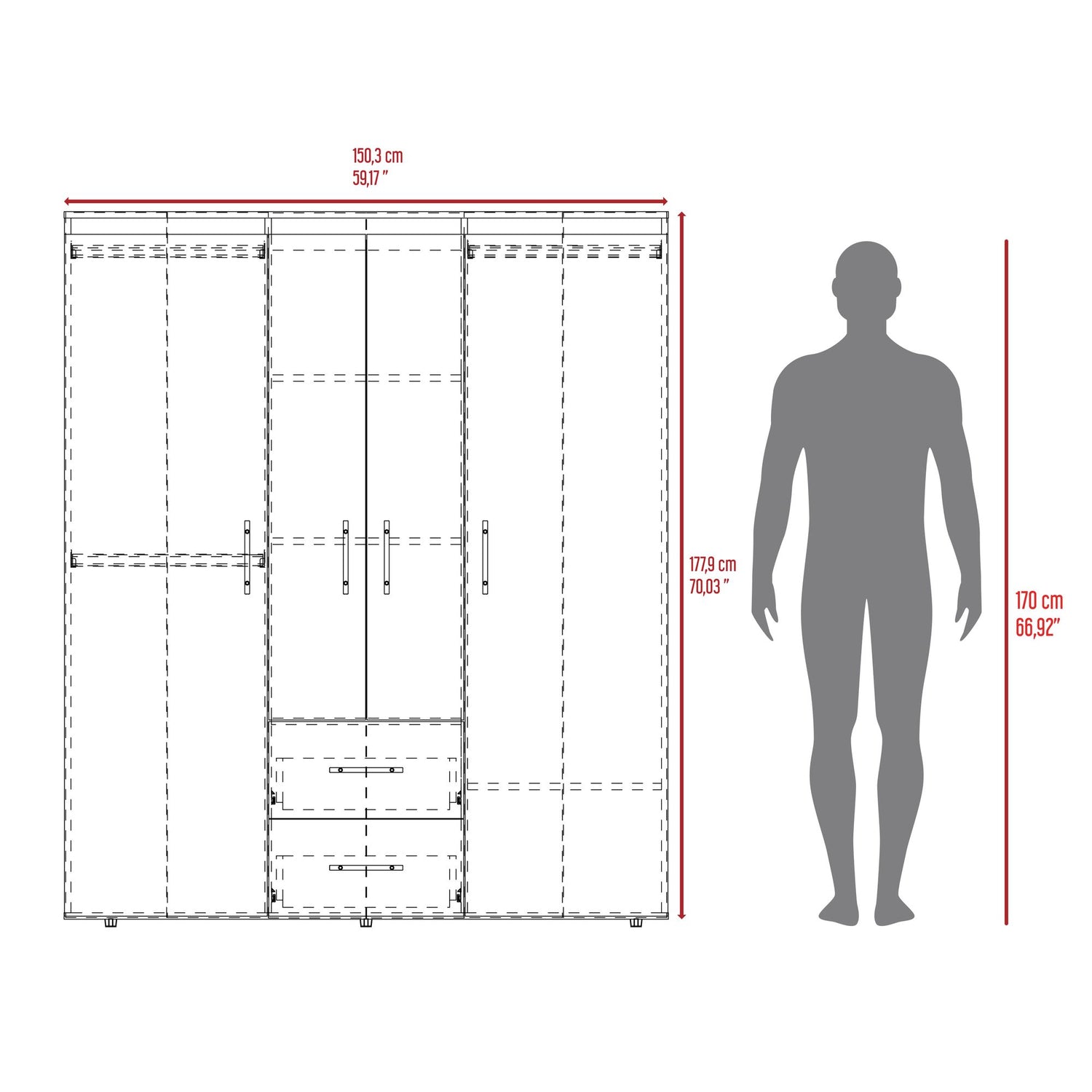Closet Bariloche Eco Fresno Europeo y Wengue 150.3x177.9cm Con Dos Cajones y Cuatro Puertas
