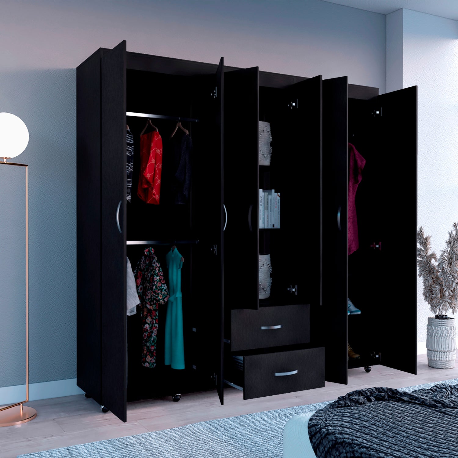 Closet Bariloche Wengue 200x200cm con Dos Cajones y Seis Puertas