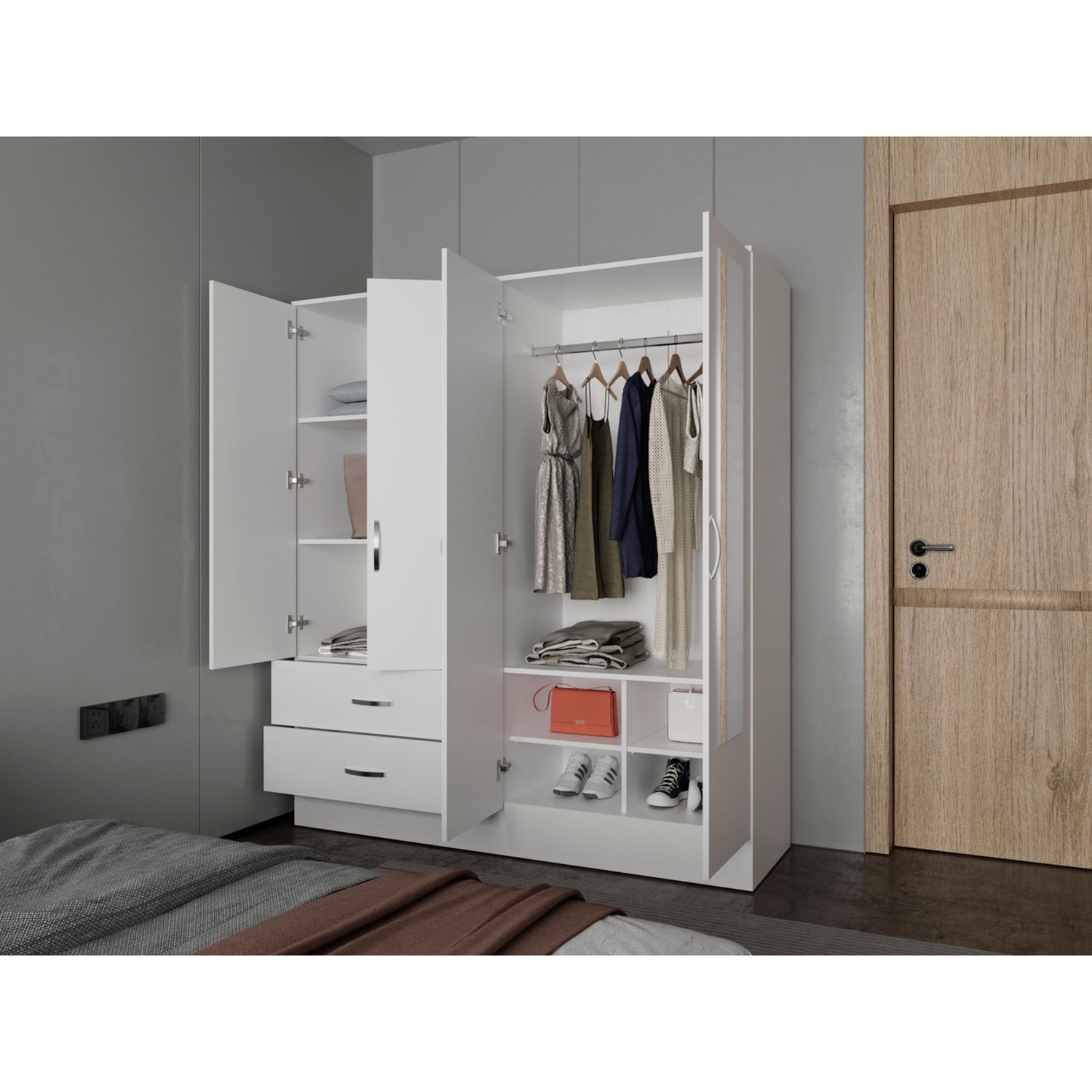 Closet Bolton Blanco 120x180.6cm Con Dos Cajones Tres Puertas y Espejo