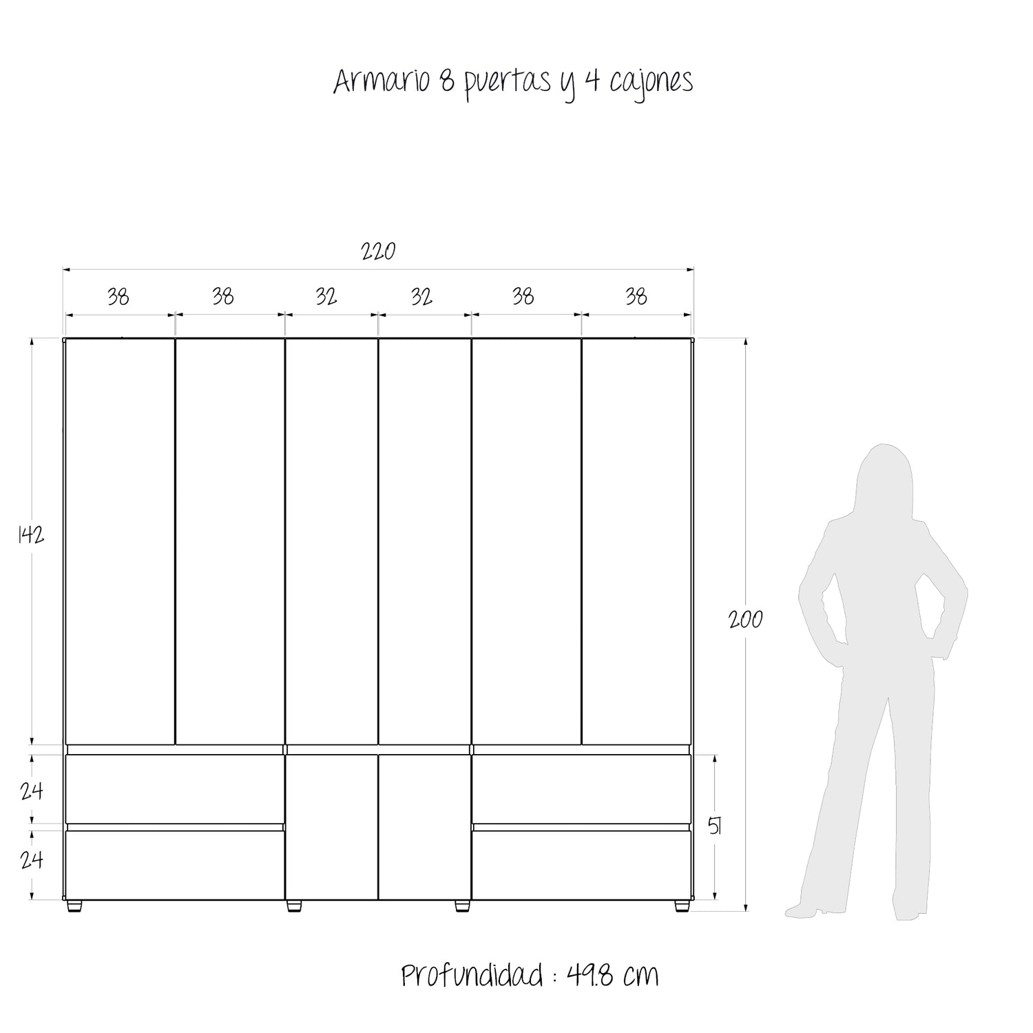 Closet Dallas Niebla y Blanco 220x200cm con Cuatro Cajones y con Doce Compartimientos