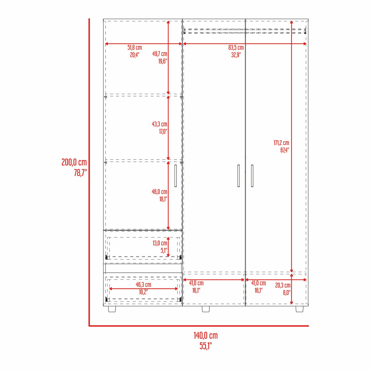 Closet Dassel Nogal y Wengue 140x200cm Con Dos Cajones y Dos Entrepaños