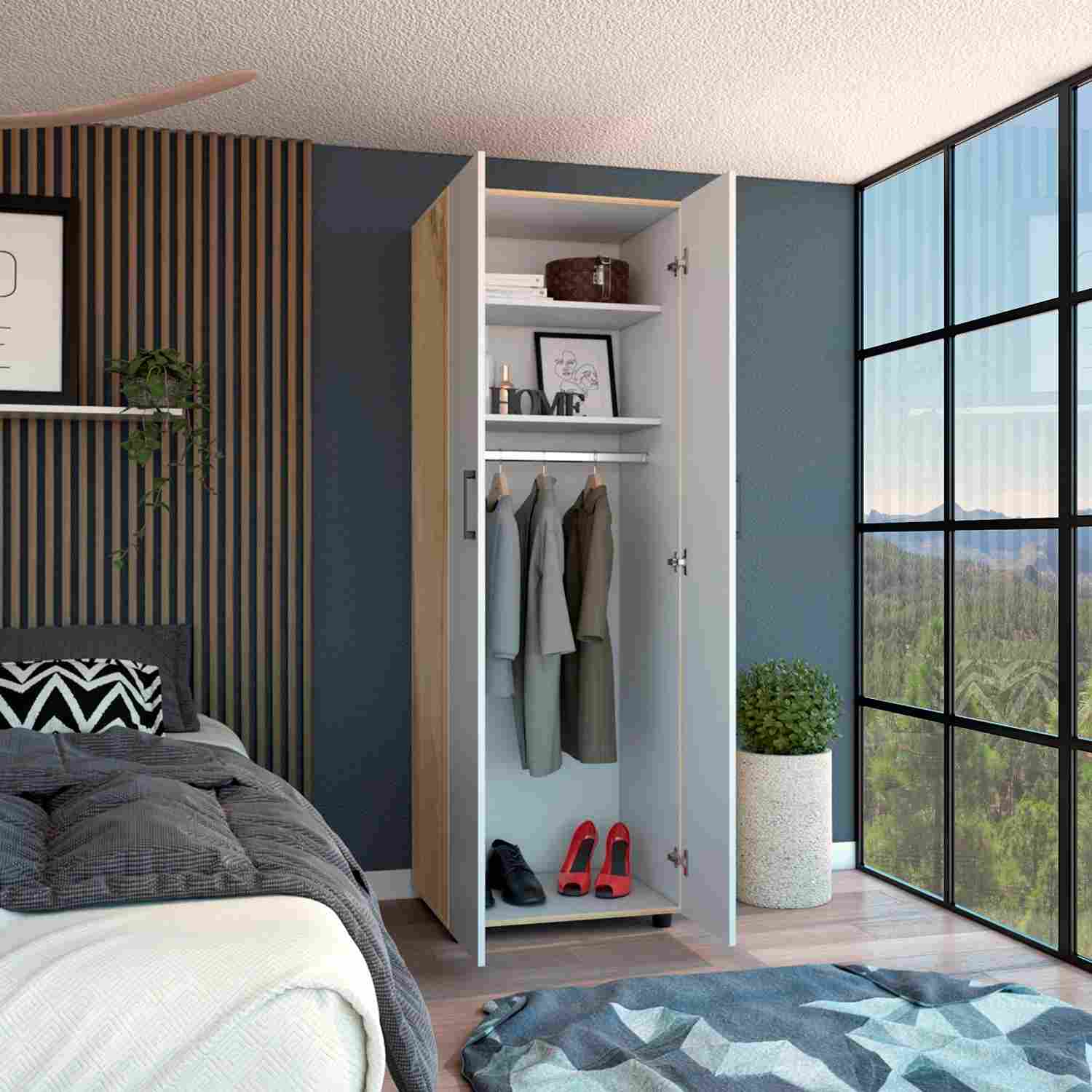 Closet Eter Blanco 60 cm con Dos Puertas, Entrepaños y Colgadero
