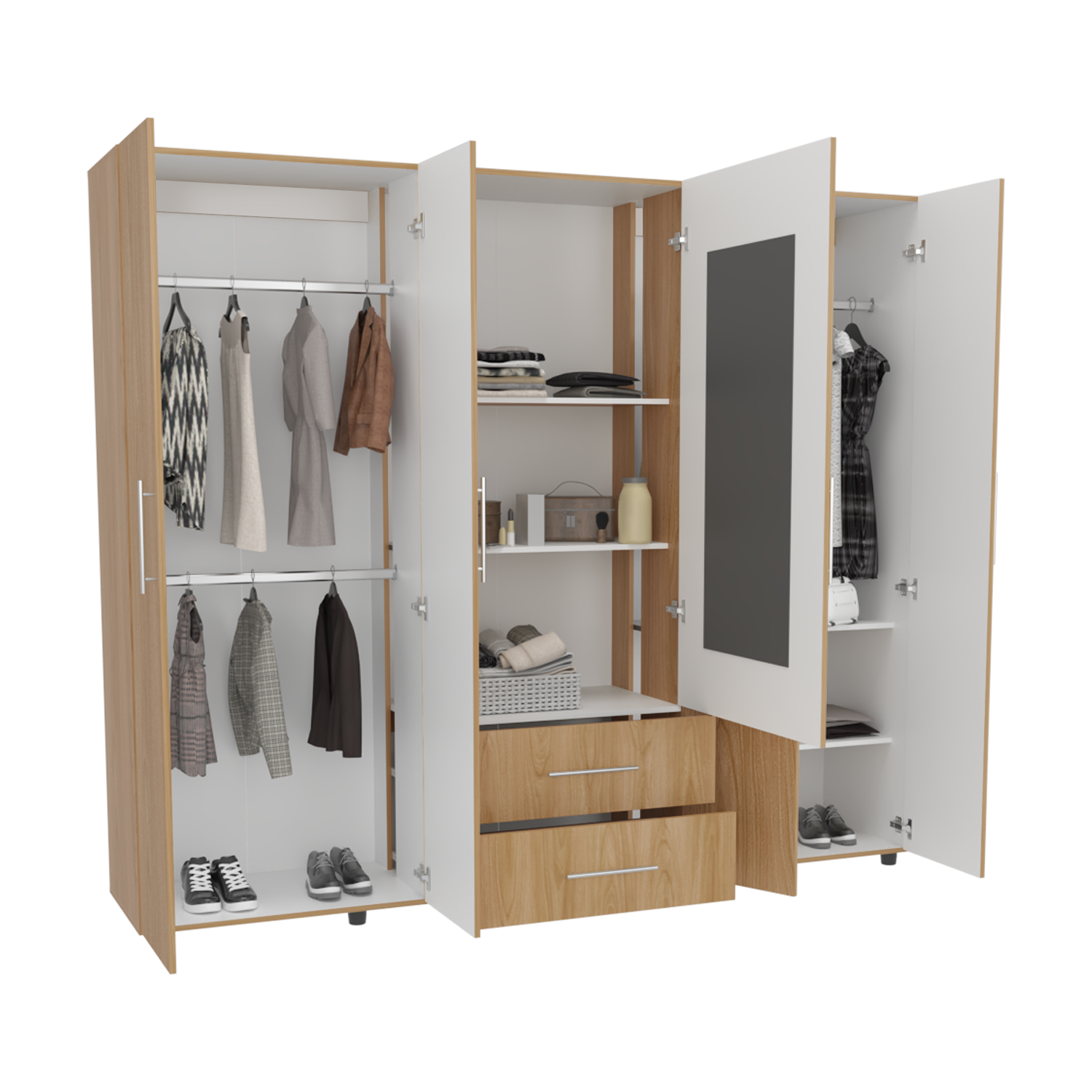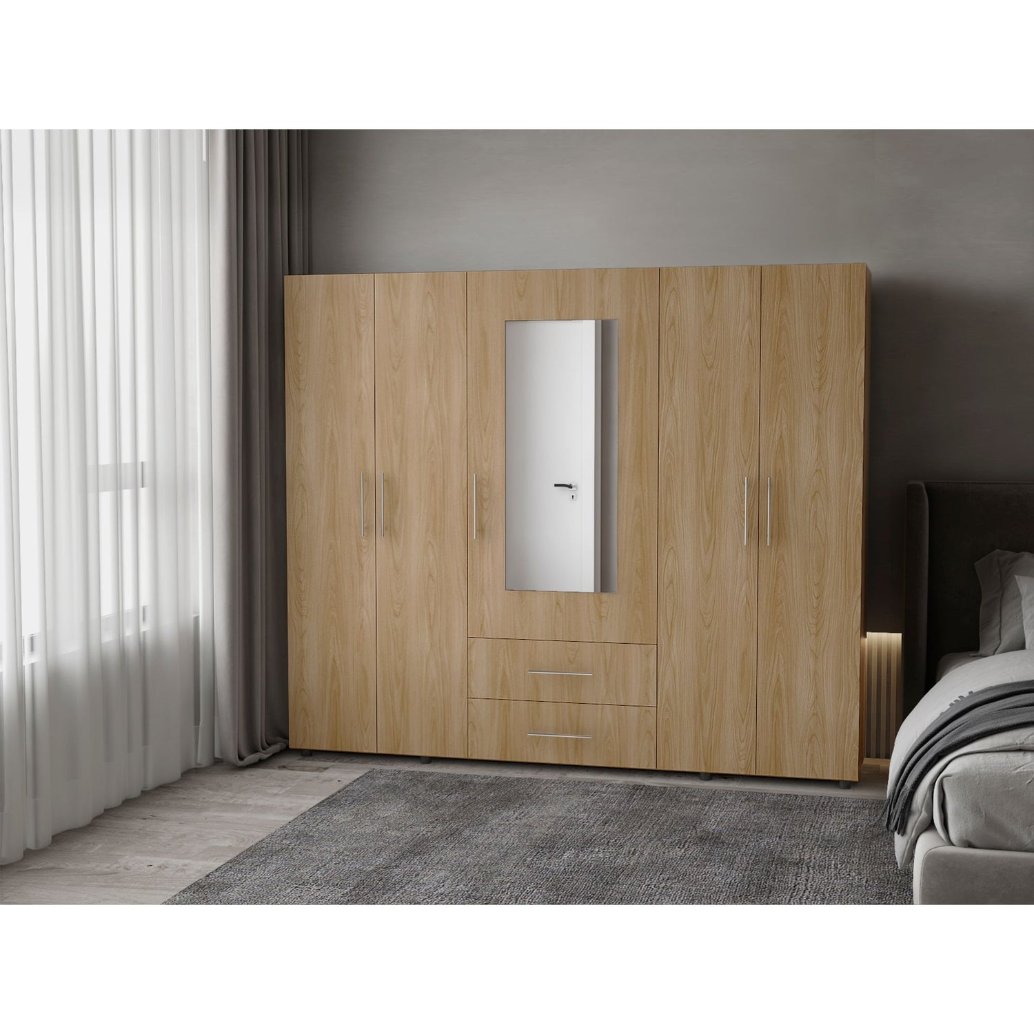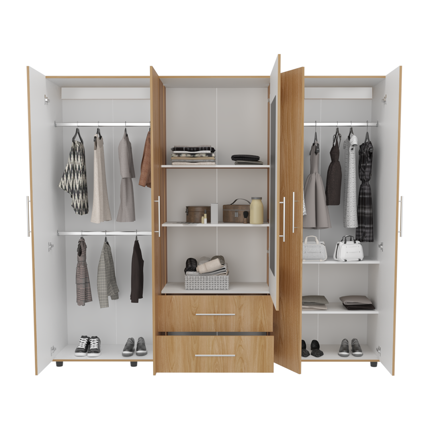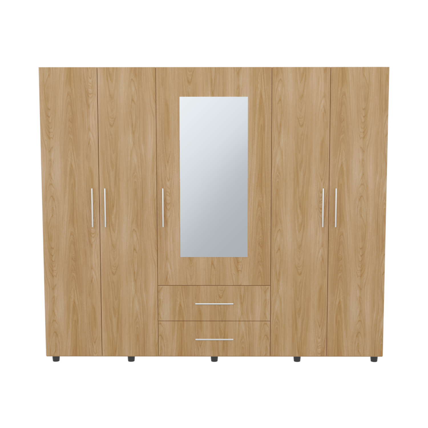 Closet Grayson Fresno Europeo 230x200cm con Dos Cajones con Cinco Puertas y con Espejo
