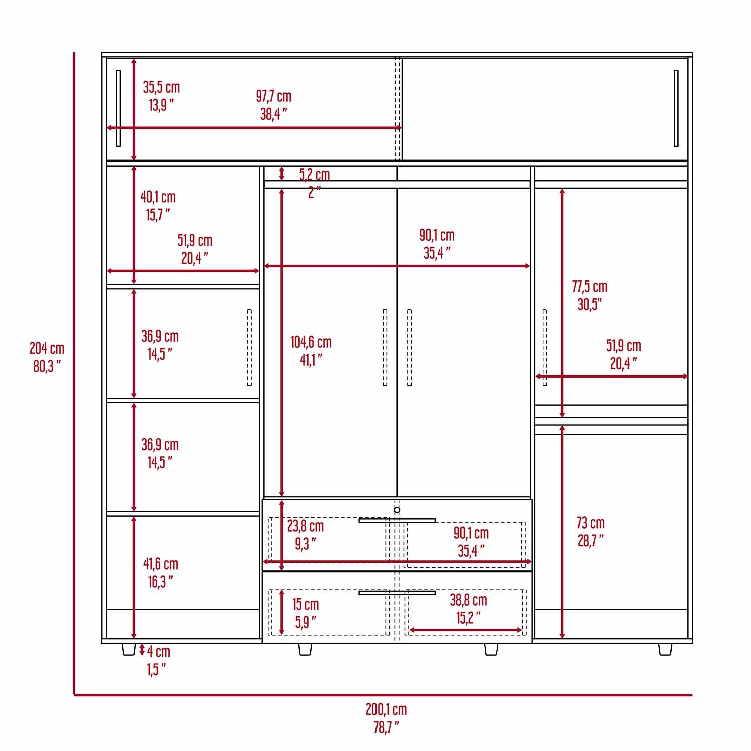 Closet Hogar Basic Duna 200 cm con Dos Cajones y Colgadero de Ropa