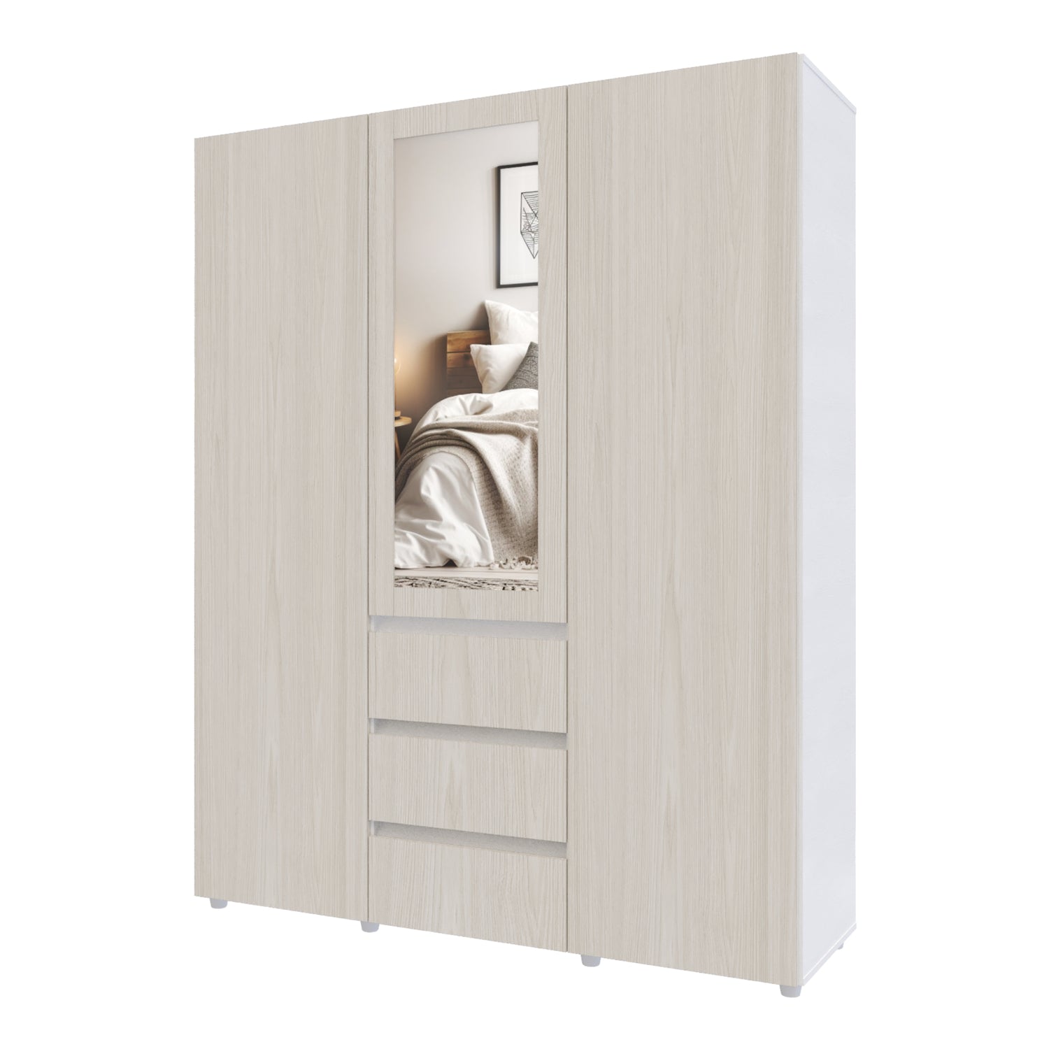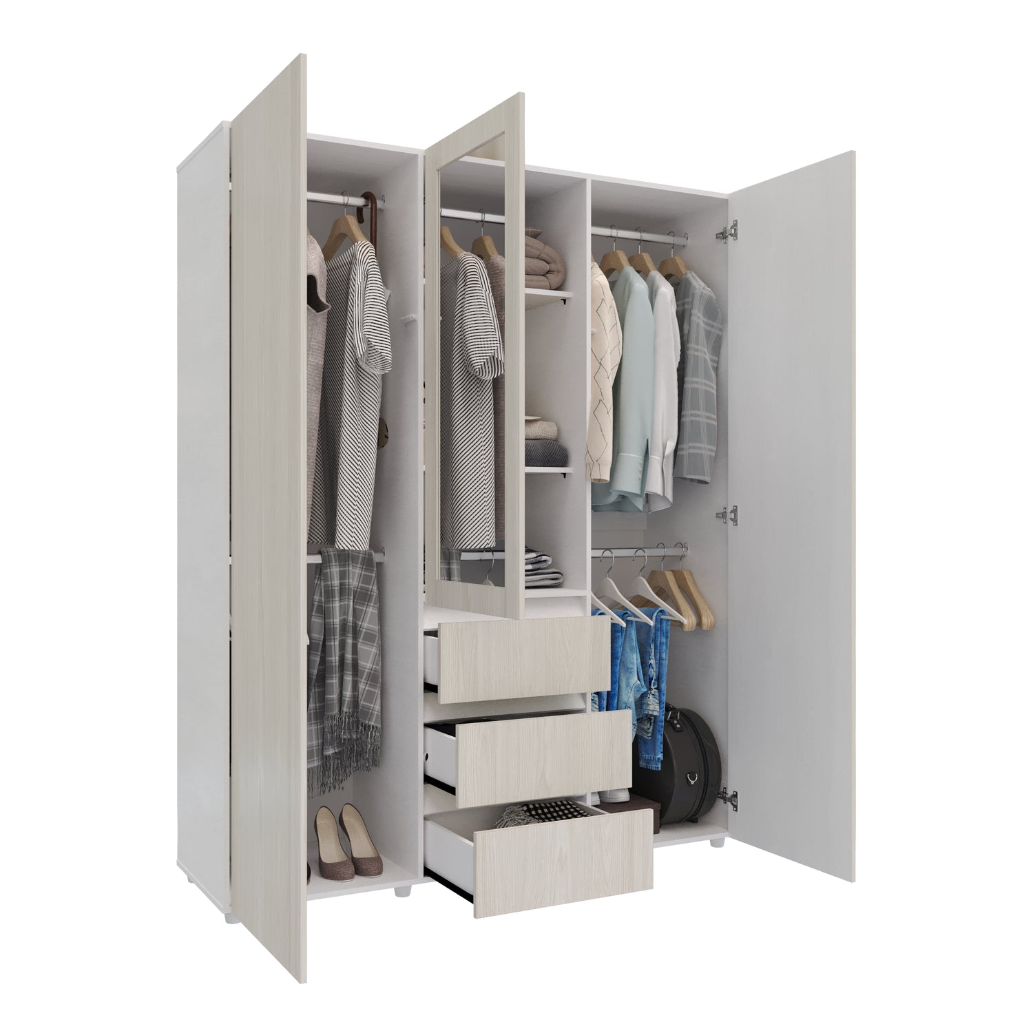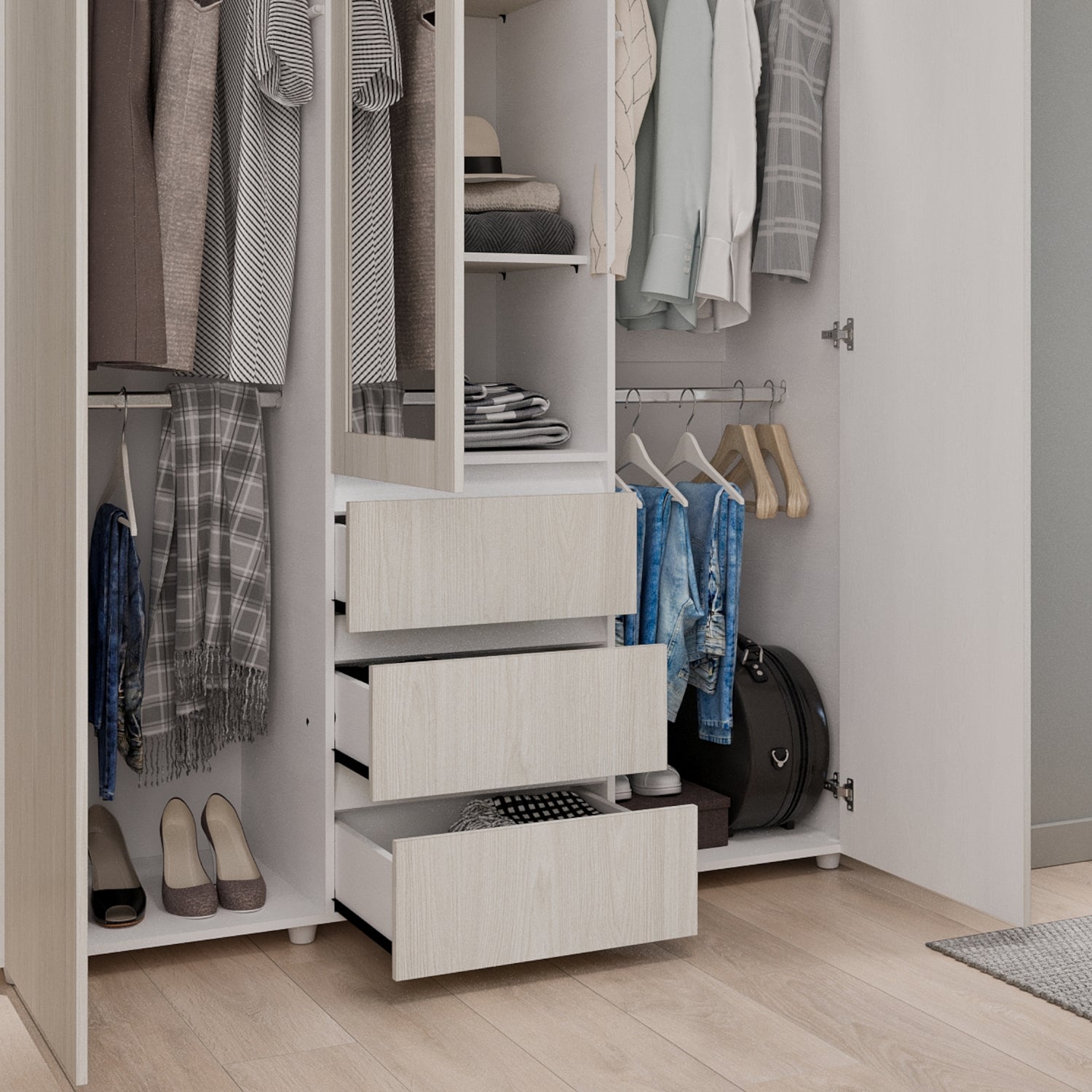 Closet Java Niebla y Blanco 160x200cm con Tres Cajones con Cinco Compartimientos y con Espejo