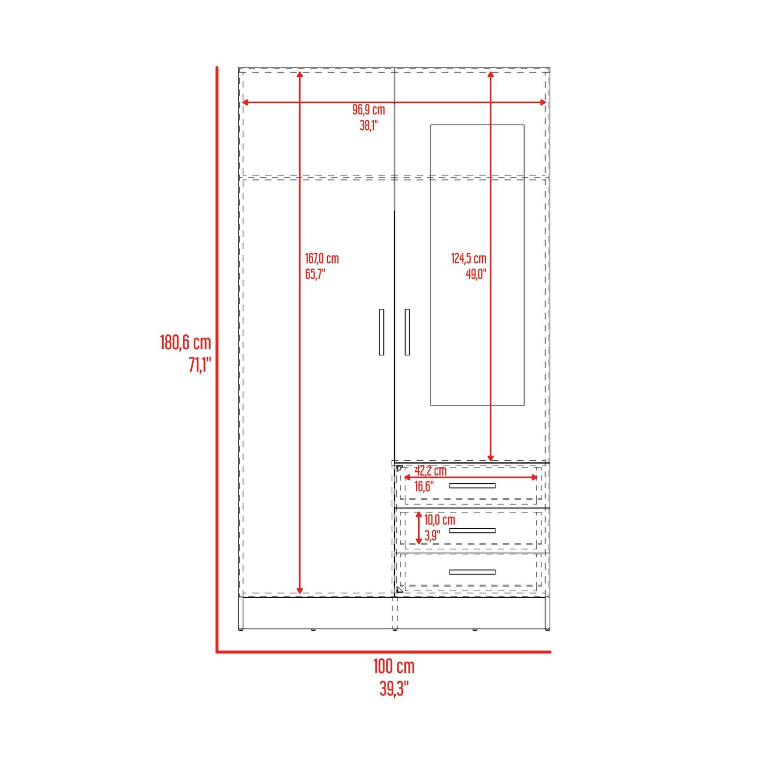 Closet Lumy Wengue 100x180.6cm con Tres Cajones con Seis Compartimientos y con Espejo