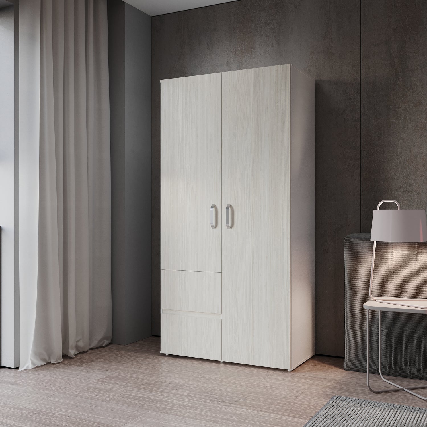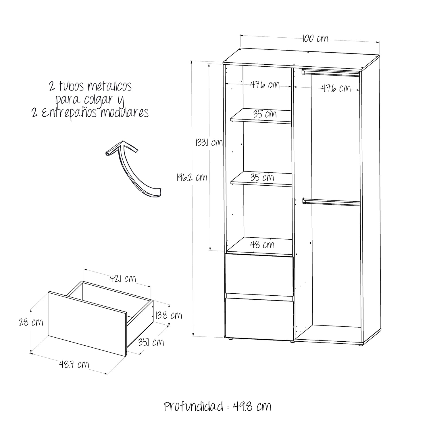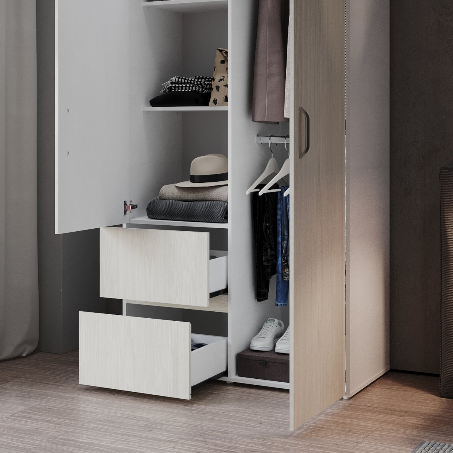 Closet Malabo Niebla y Blanco 100x198cm con Dos Cajones y con Dos Compartimientos