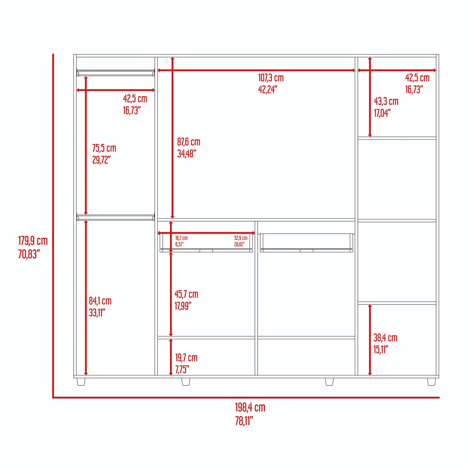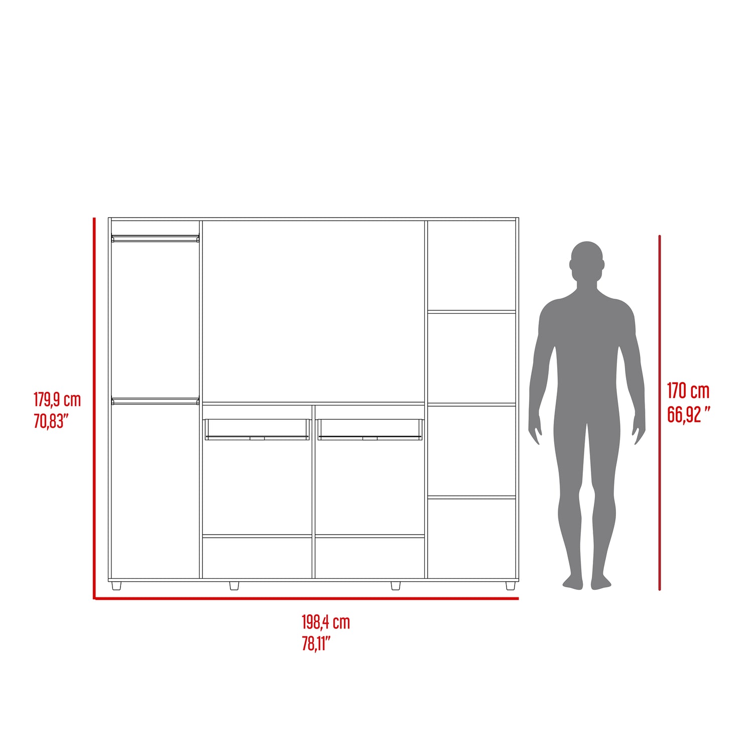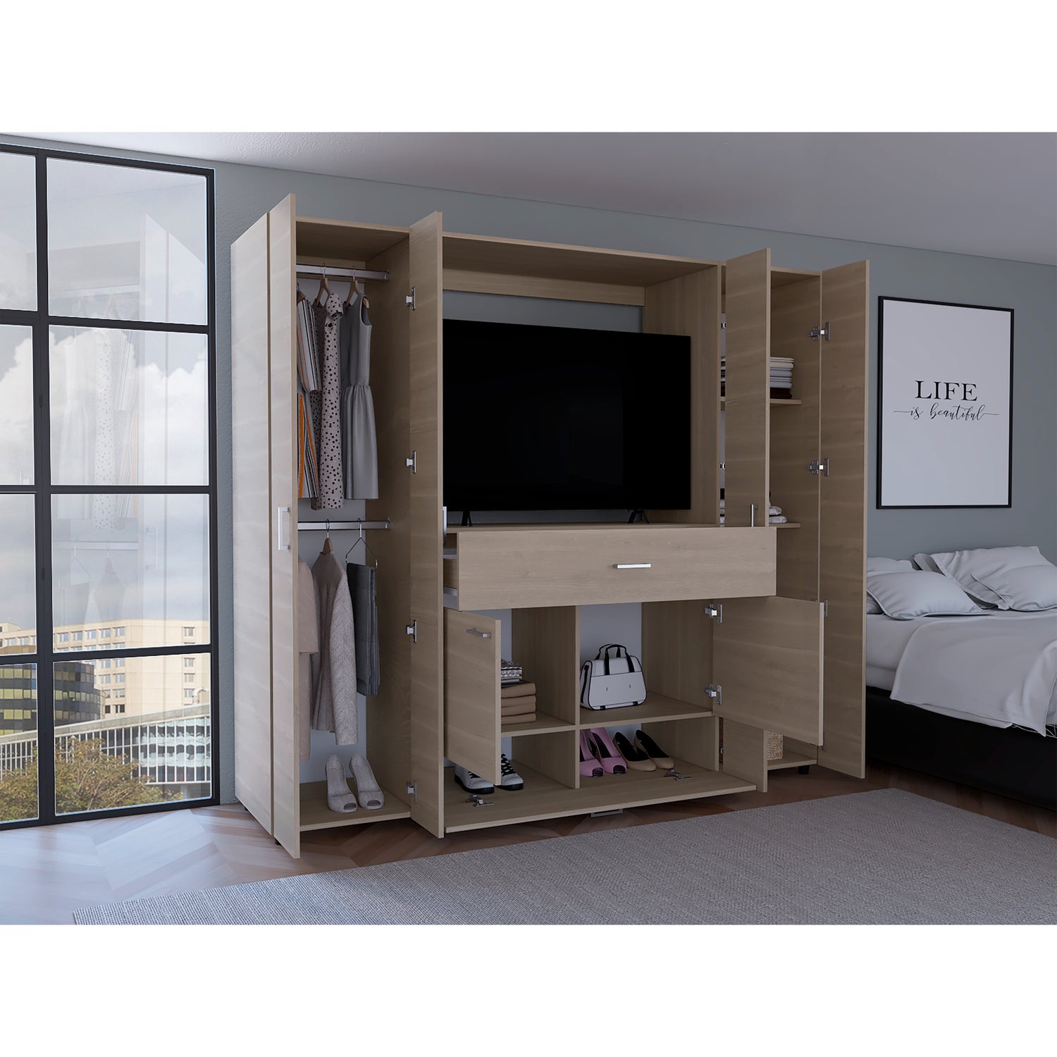 Closet Manila Z New Bardolino 198.4x179.9cm con Espacio para TV de 46 Pulgadas