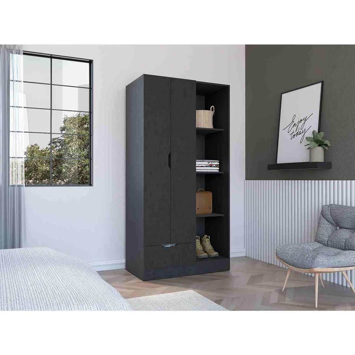 Closet Memphis Wengue 90x181cm con 1 Cajones con 3 Entrepaños