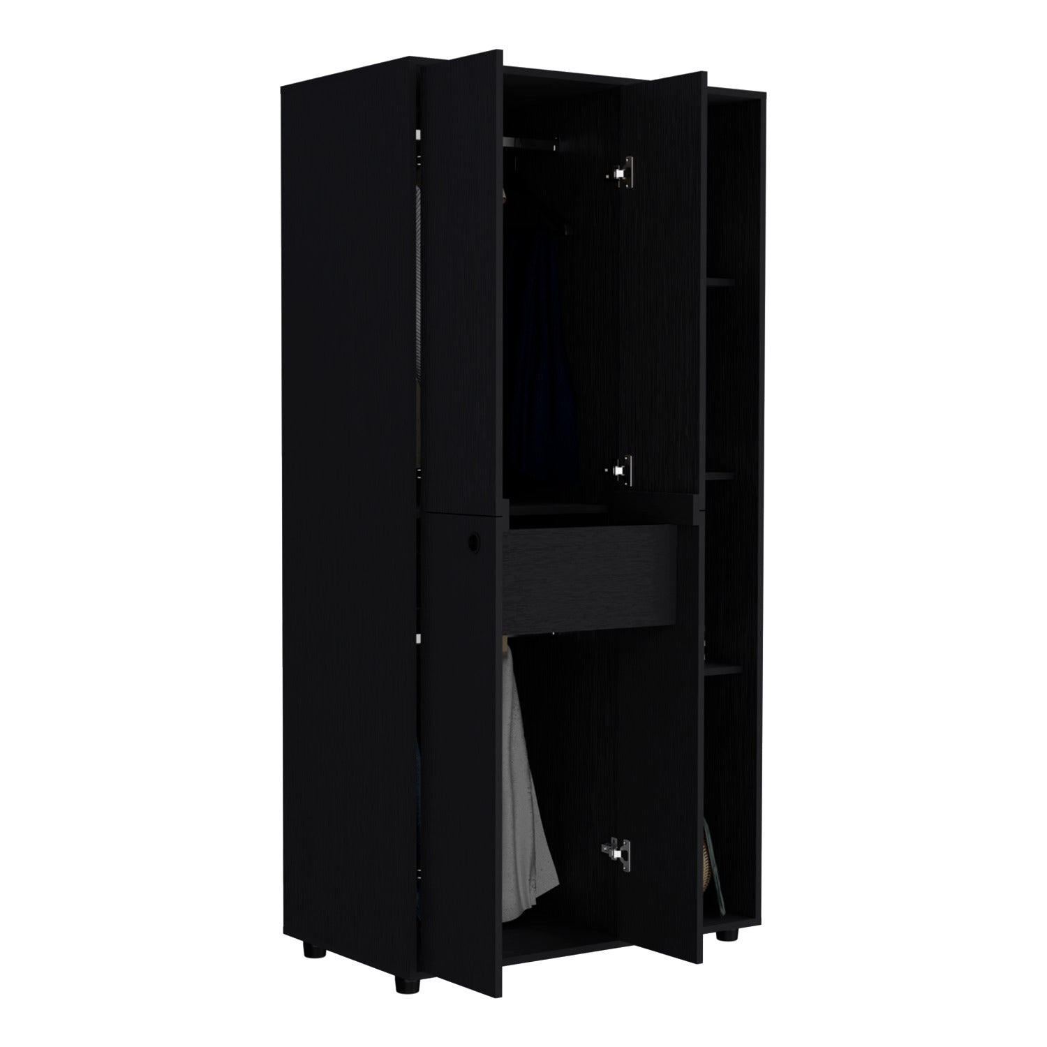 Armario con dos tubos, un cajon oganizador interior, amplios espacios para guardar ropa
