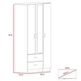 Closet con tubo cromado para colgar ropa, dos cajones, un espejo, amplios espacios para guardar y organizar
