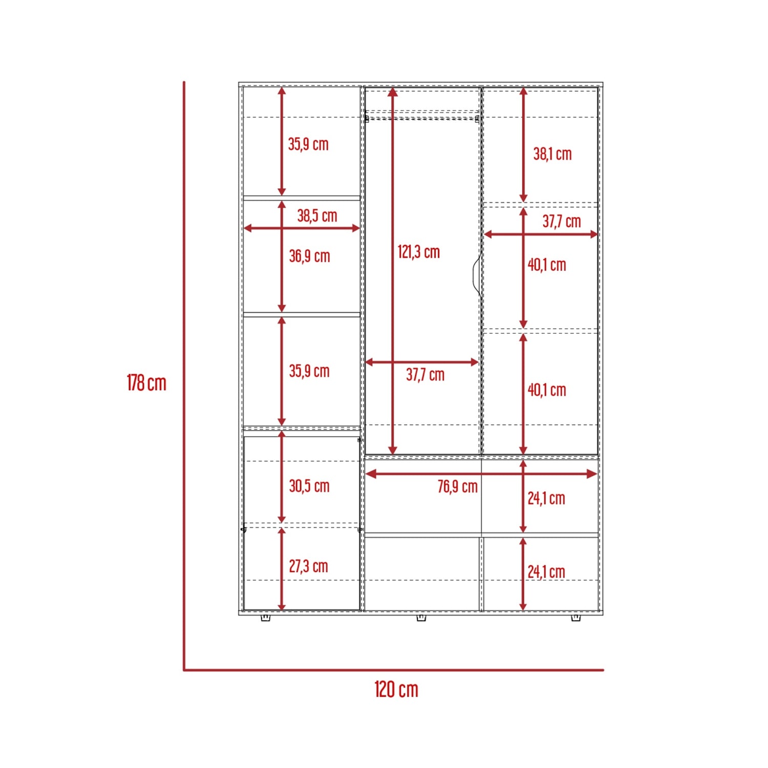 Closet Sleep Duna y Blanco 120x178cm con Seis Compartimientos y con Tres Puertas