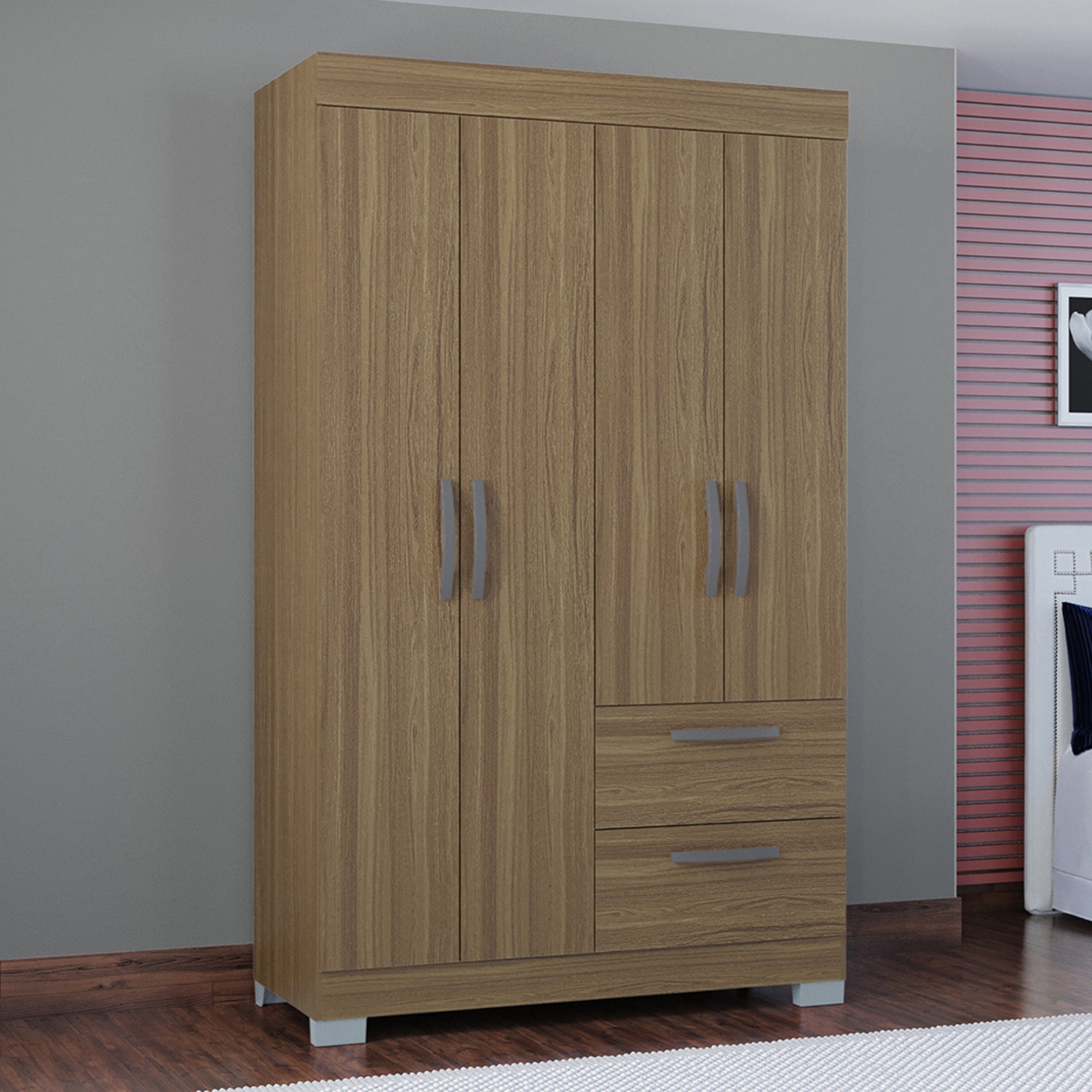 Closet Toquia Castaño 110x188cm con Dos Cajones y con Cuatro Puertas
