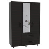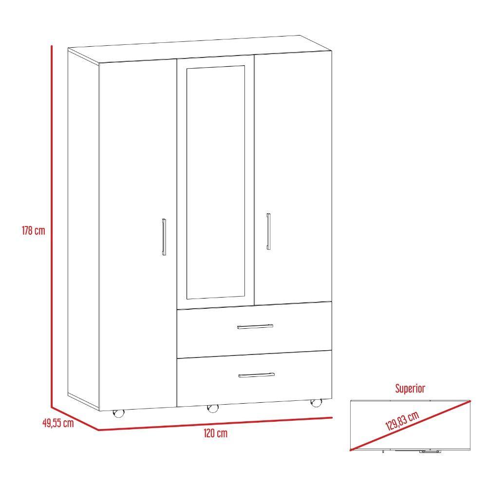 Espectacular mueble Torino color Wengue fabricado con madera aglomerada dándole un nuevo aire a tus espacios. En él puedes ubicar todas tus pertenencias pues cuenta con tres puertas abatibles, una de ellas tiene un espejo incorporado para que revises los últimos detalles de tu look. Además cuenta con dos cajones organizadores de manija metálica donde puedes guardar tus objetos personales. Tiene rodachinas que facilitan su desplazamiento