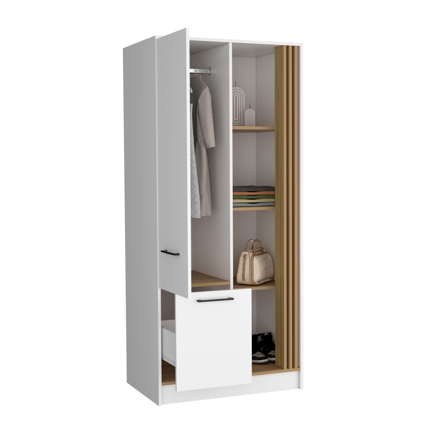 Closet Vance Blanco y Fresno Europeo 80x180cm Con Un Cajón y Una Puerta
