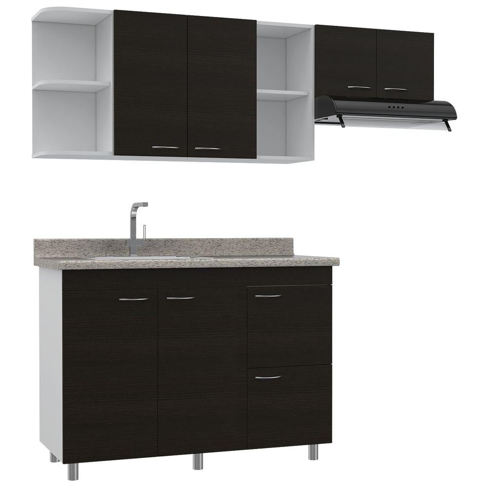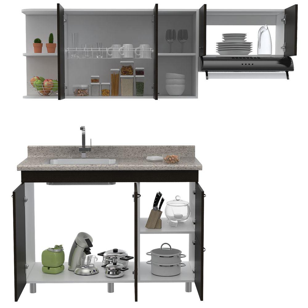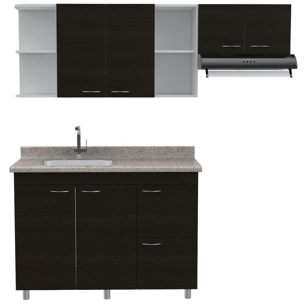 Cocina Elica Wengue y Blanco 150 cm Izquierda con Mesón