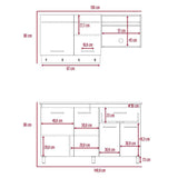 La cocina Alani tiene un juego de colores que combina perfecto con la paleta de colores de tu hogar. En la parte superior cuenta con dos puertas abatibles, incluye un locero y manija metálica. Además contiene espacio para campana extractora de 60 cm. El mueble inferior sirve para un mesón de 1,5m de ancho. Está diseñada para armar al lado derecho y lado izquierdo.