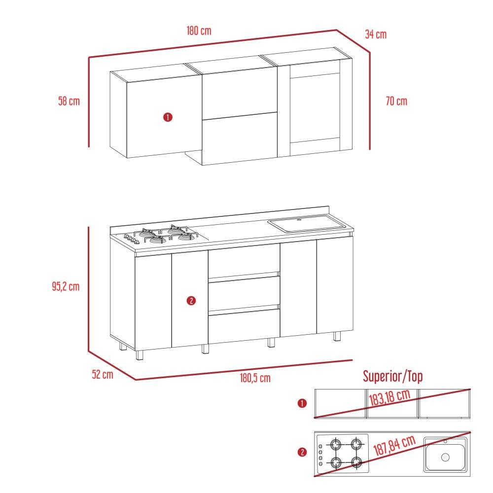 Superior: Alto: 70cm Ancho: 180cm Profundo: 34cm Inferior: Alto: 95,2cm Ancho: 180,5cm Profundo: 52cm
