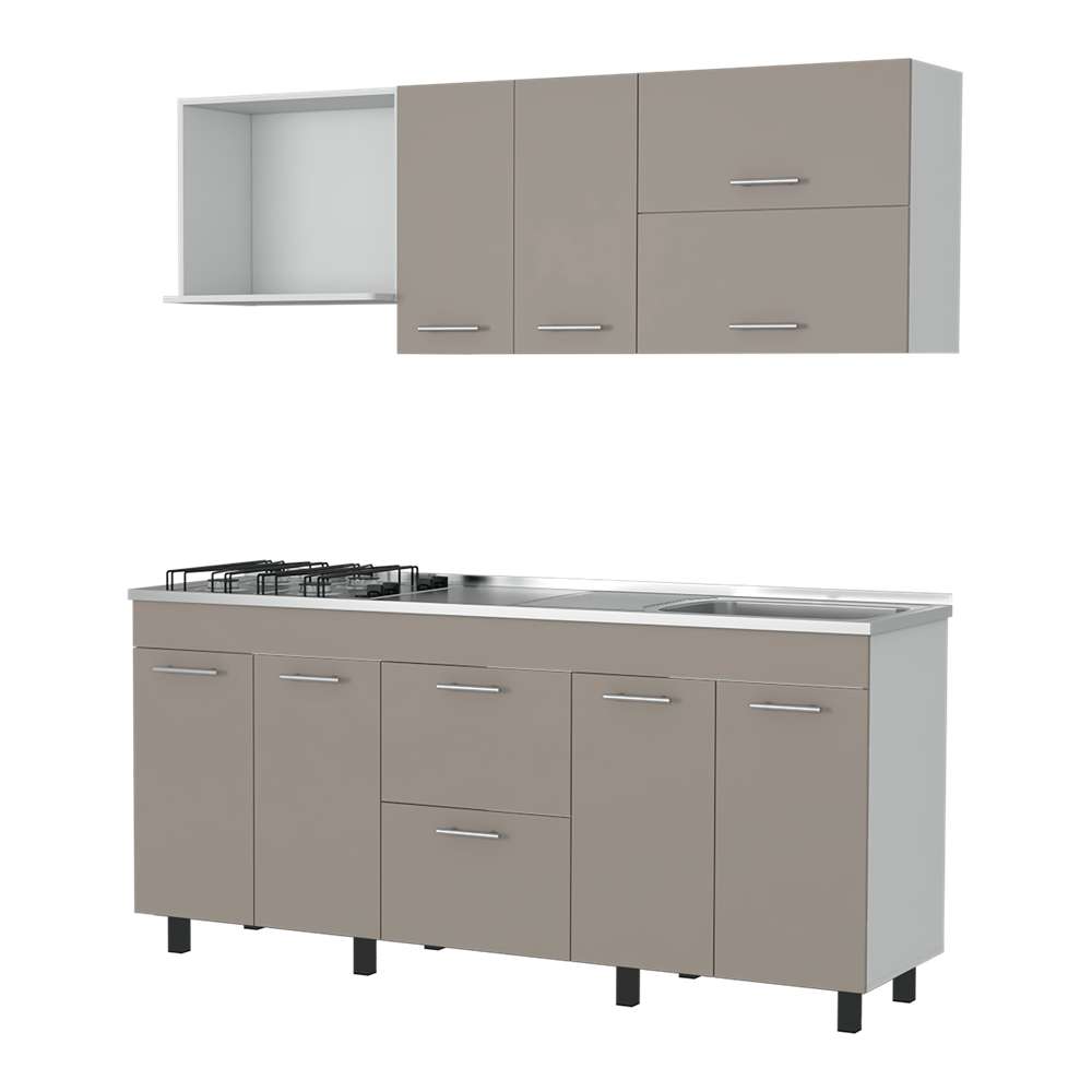 Cocina Sakai Taupe y Blanco 180 cm Derecha con Mesón