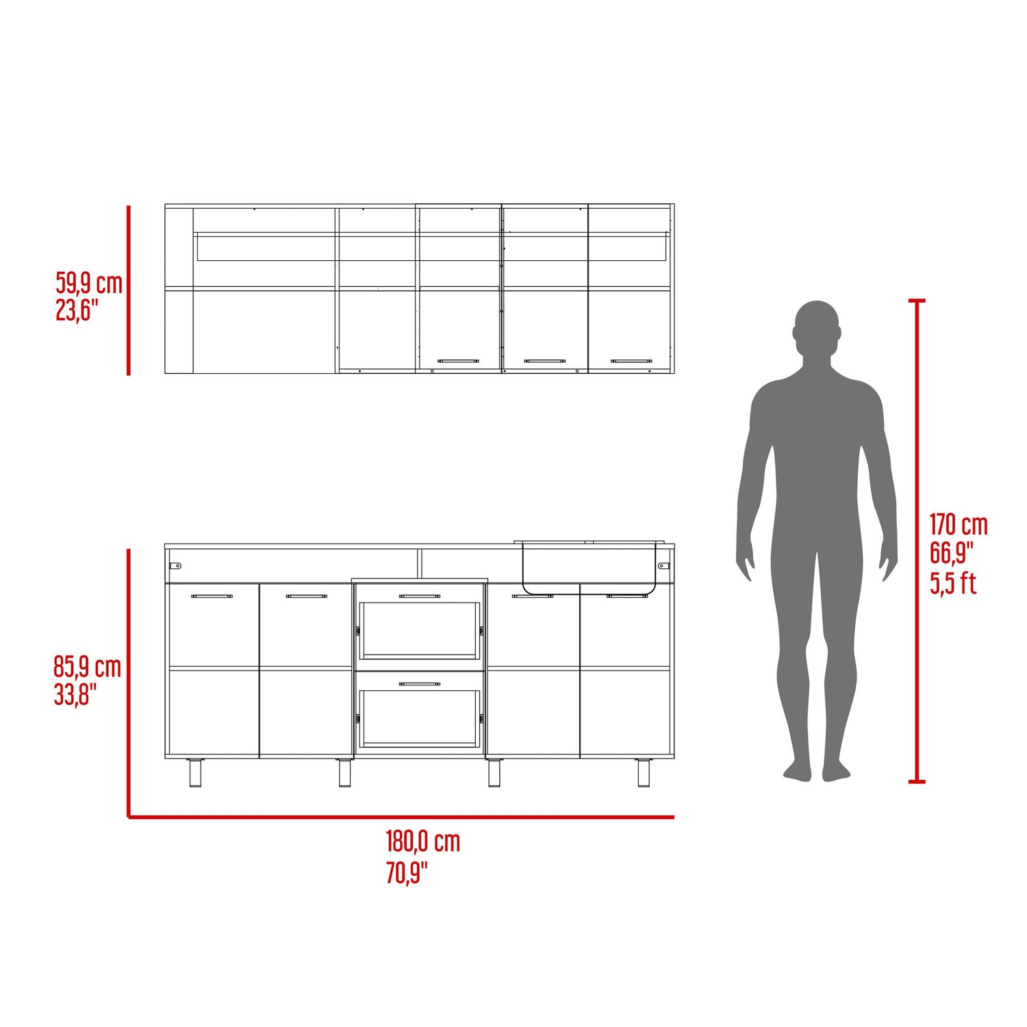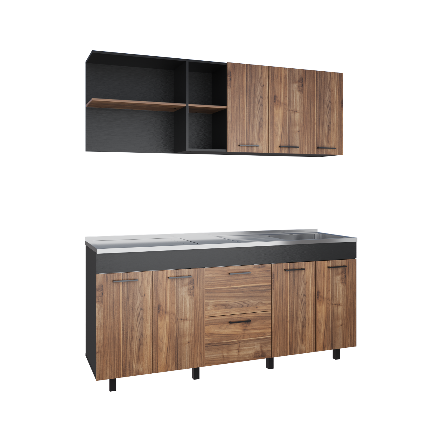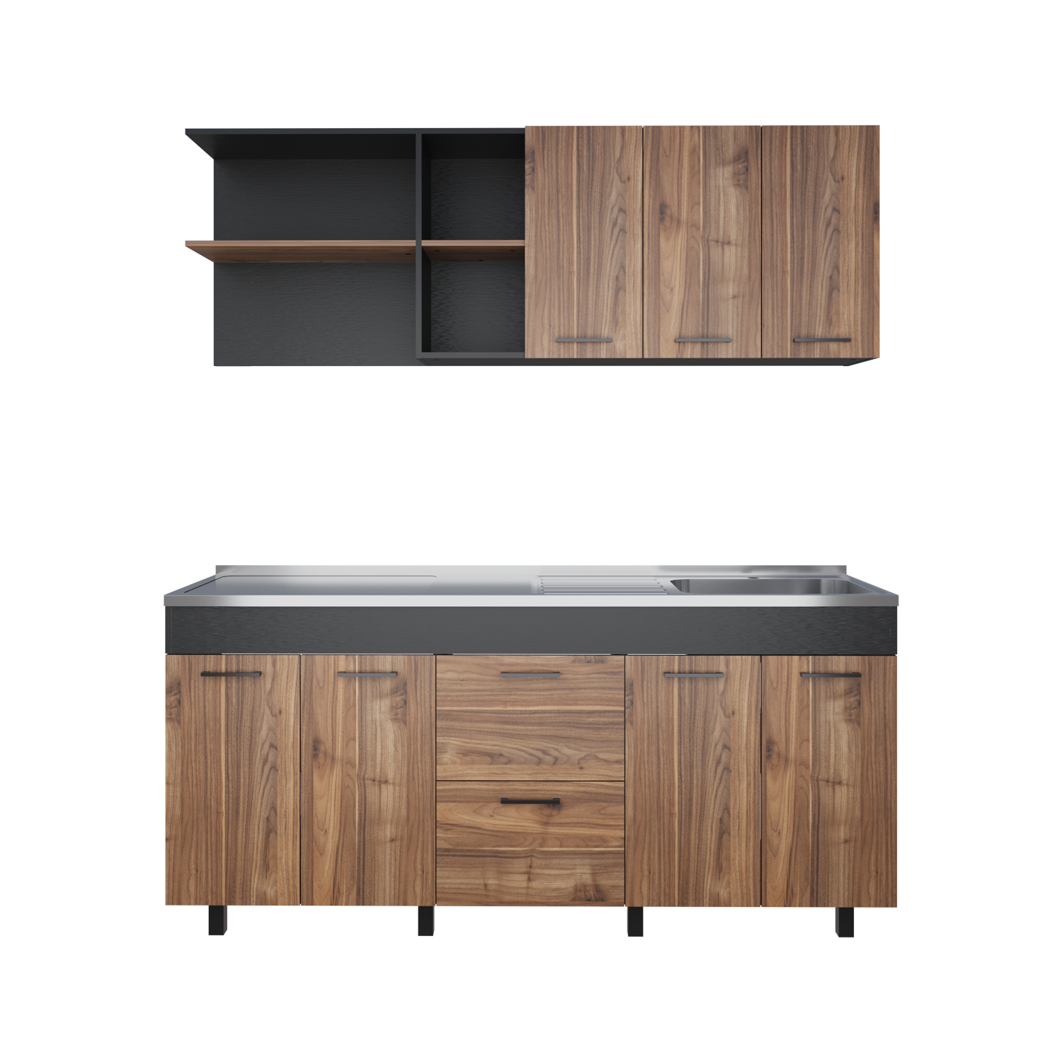 Cocina Balen Wengue 180x60cm con Mesón de Acero Inoxidable para Lado Derecho y sin Estufa