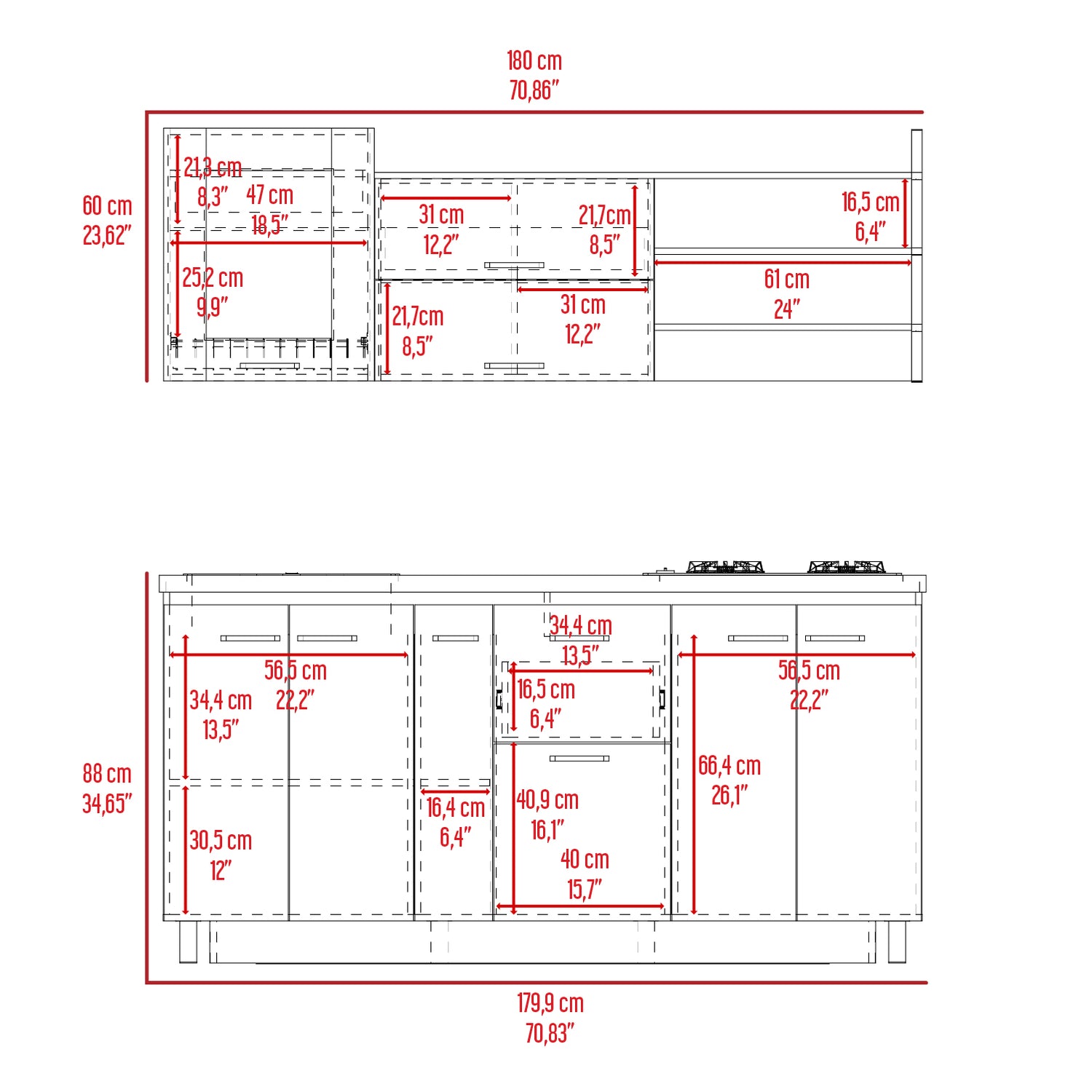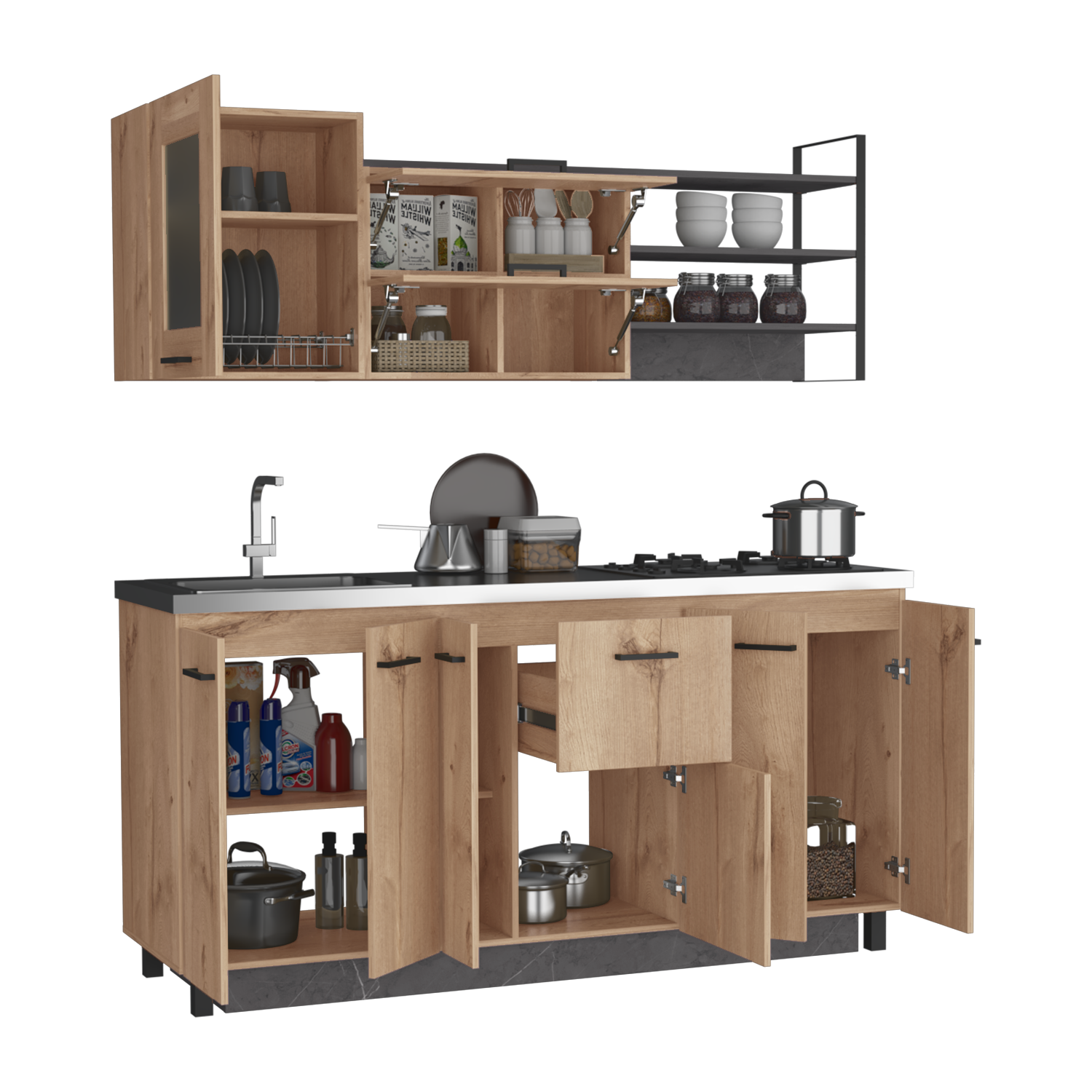 Cocina Carmen Duna Y Onix 180x88cm con Mesón de Acero Inoxidable y con Pozuelo