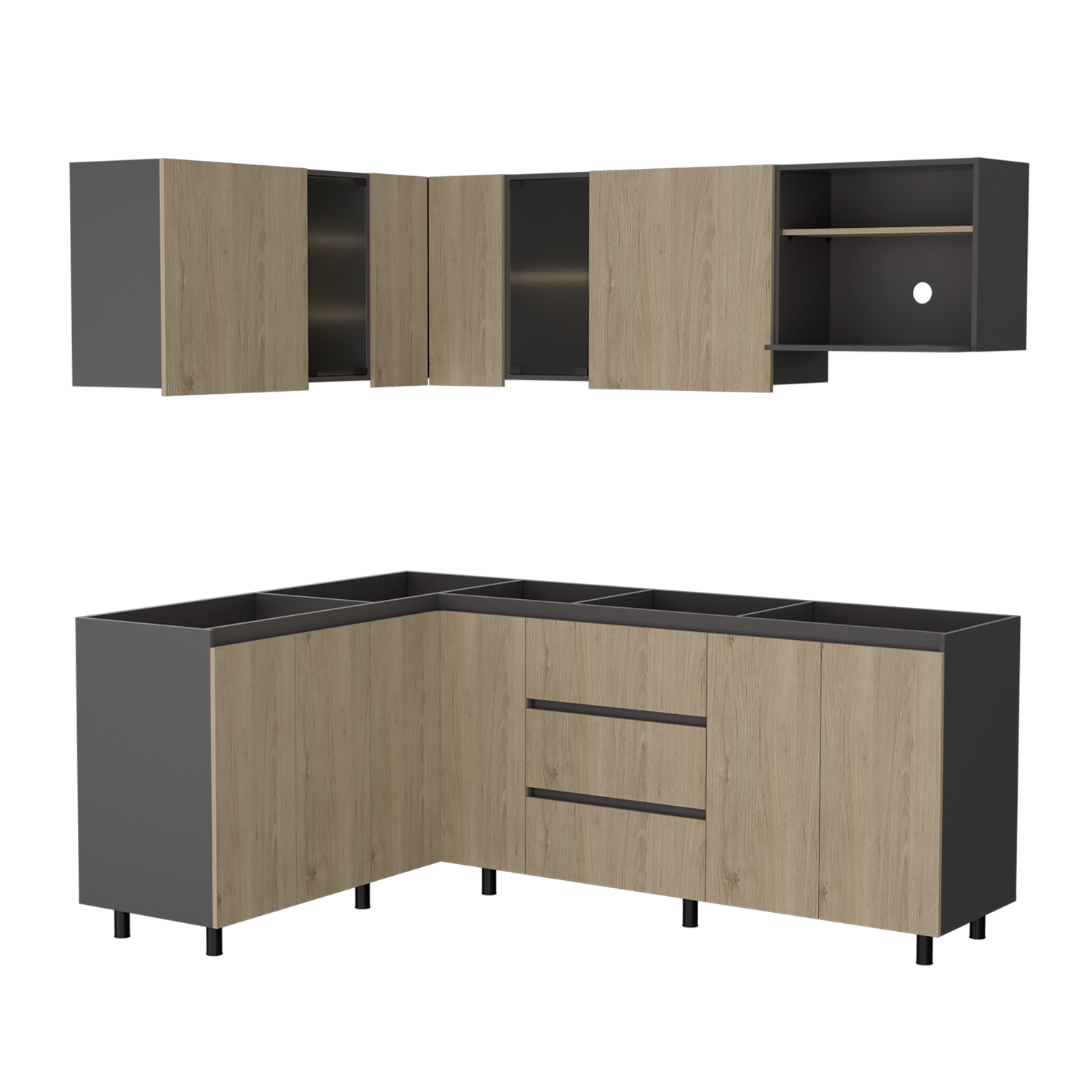 Cocina Esquinera Londres Plomo y Rovere 210.3x62cm sin Mesón y sin Estufa
