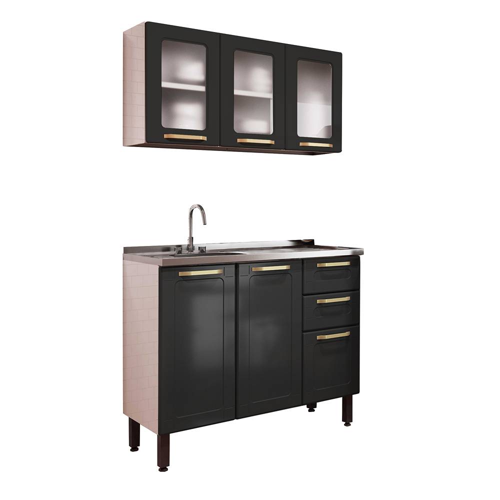 Cocina Integral Negro 105x52,5cm con Meson de Acero Al Carbon y con Pozuelo para lado Izquierda