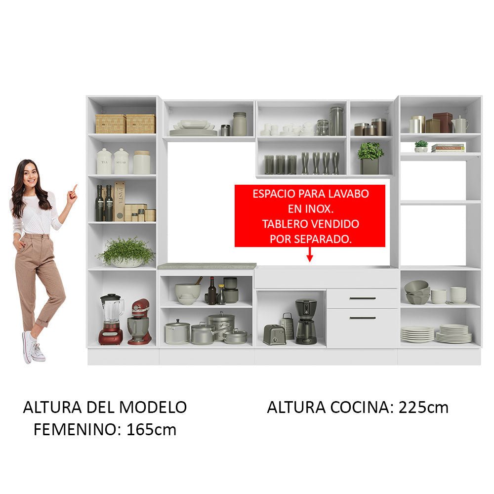 Cocina Integral Agata Blanco 330x225cm sin Mesón y sin Estufa