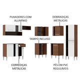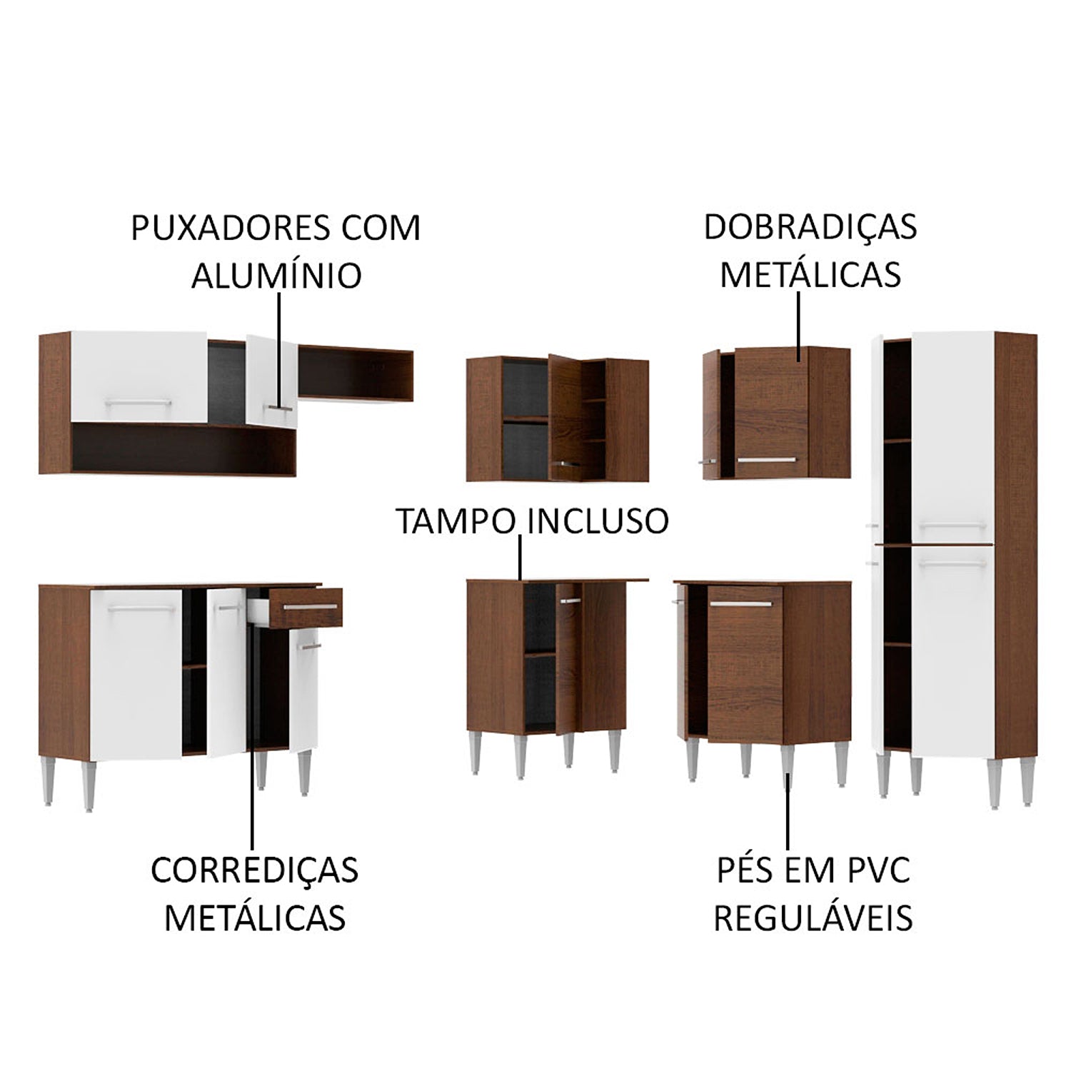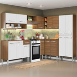 Cocina Integral Emilly Ice Blanco y Marron 417x186cm con Mesón de Madera Aglomerada MDP y sin Pozuelo