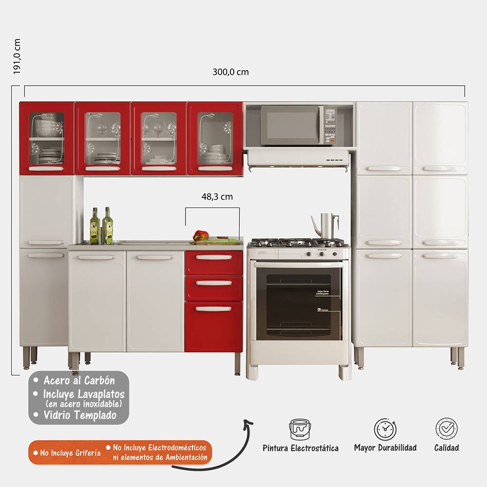 🚚 Envío GRATIS - Ver Cobertura aquíCocina Integral Evidence Blanco y Rojo 300 cm con Mesón está agotado y se enviará tan pronto como vuelva a estar disponible.