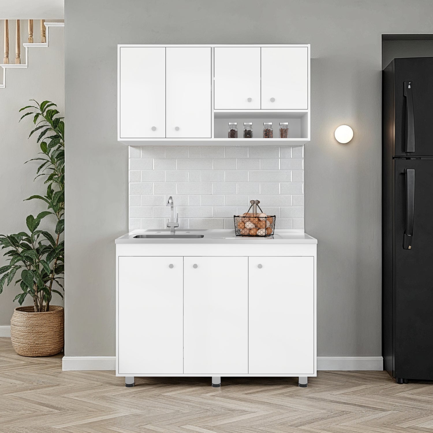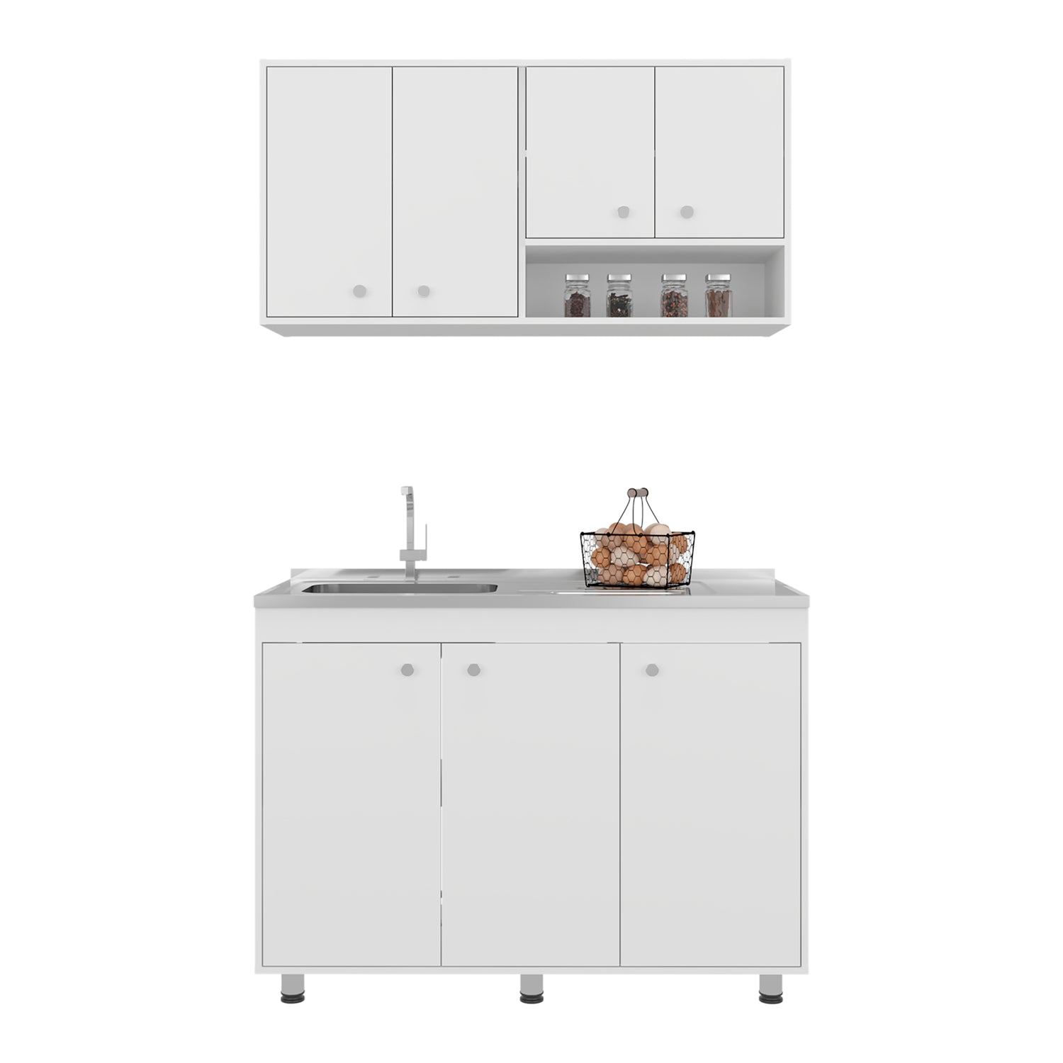 Cocina Napoleon Blanco 120x60cm con Mesón de Acero Inoxidable y sin Estufa