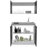 Este espectacular kit es una gran oportunidad para renovarte, puesto que viene con mueble superior e inferior para tu cocina. Está elaborado en fina madera aglomerada y en acabados de colores blanco y siena. El mueble superior cuenta con dos puertas abatibles con espacios de almacenamiento y el mueble inferior posee dos puertas abatibles, un espacio en la parte derecha para lavaplatos y un mesón en acero. En su base tiene patas en acero cromado y es de fácil instalación a la pared con chazos.