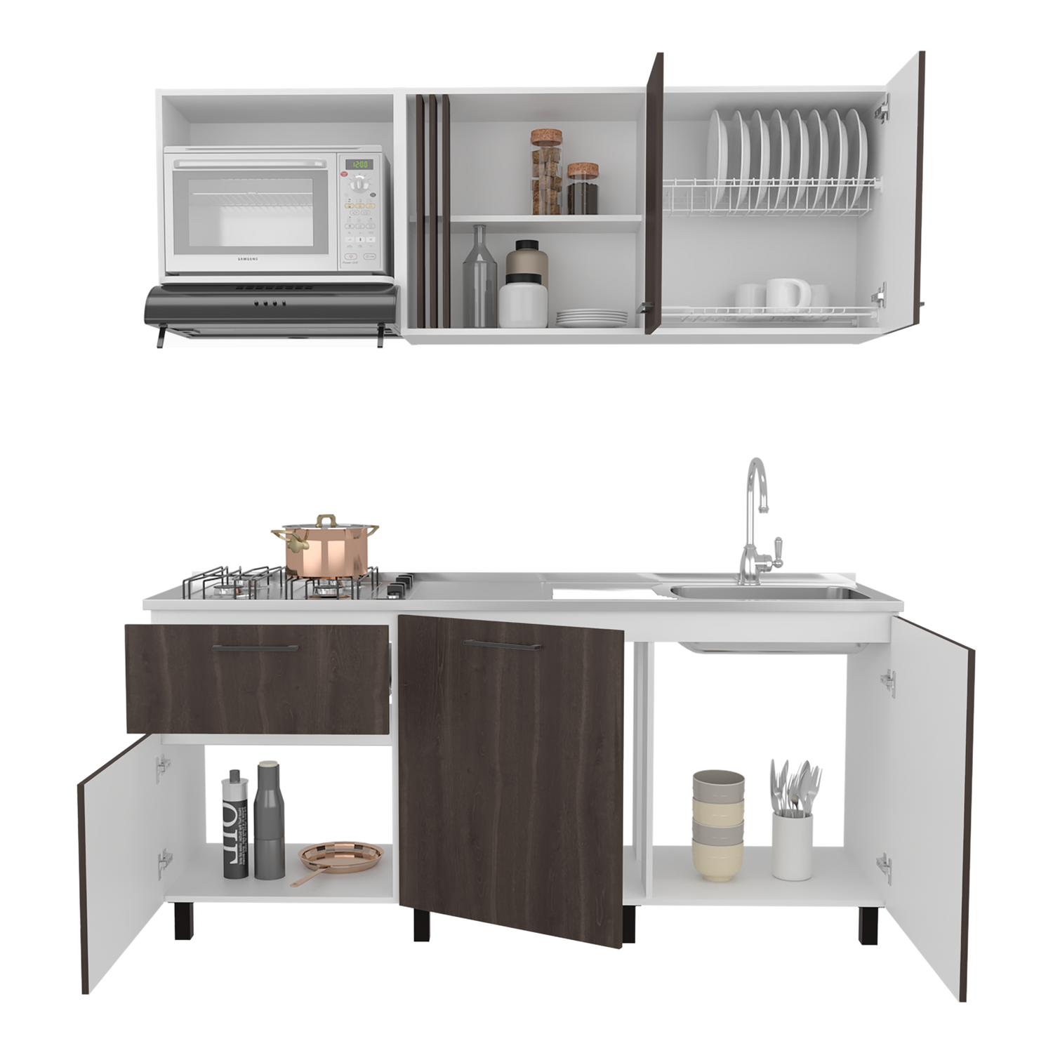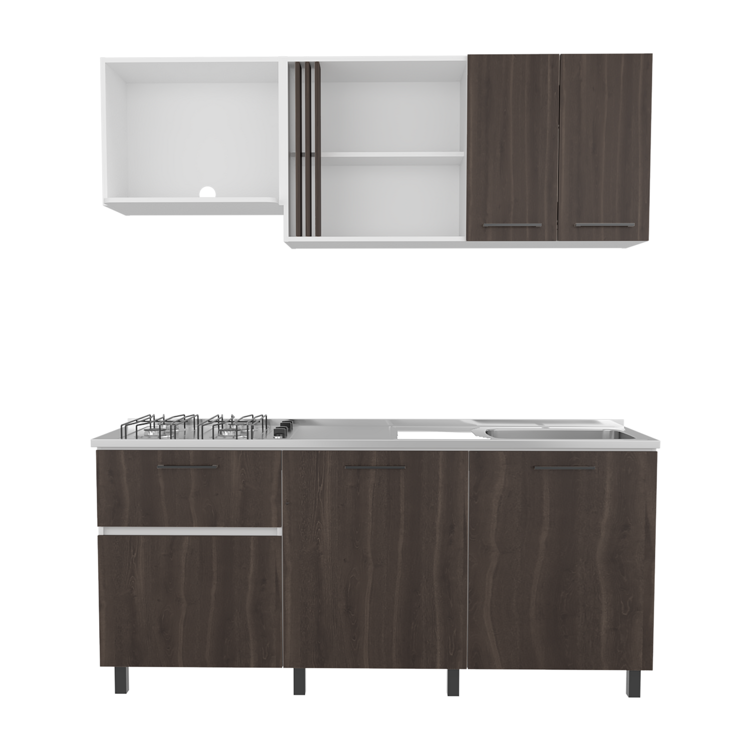 Cocina Preston Blanco y Milan 180x60cm con Meson de Acero Al Carbon Derecho y con Estufa