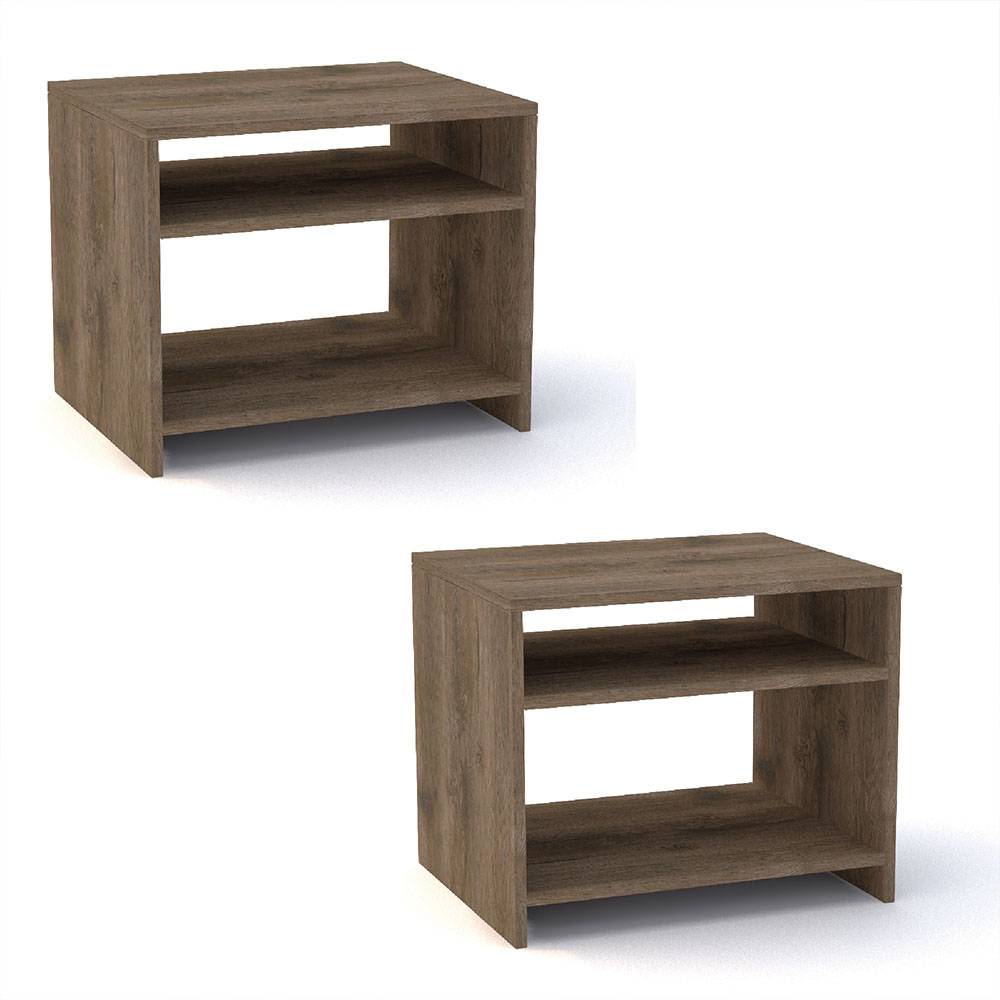 Combo 2 Mesas de Noche Aragón Nogal 50 cm con Entrepaño