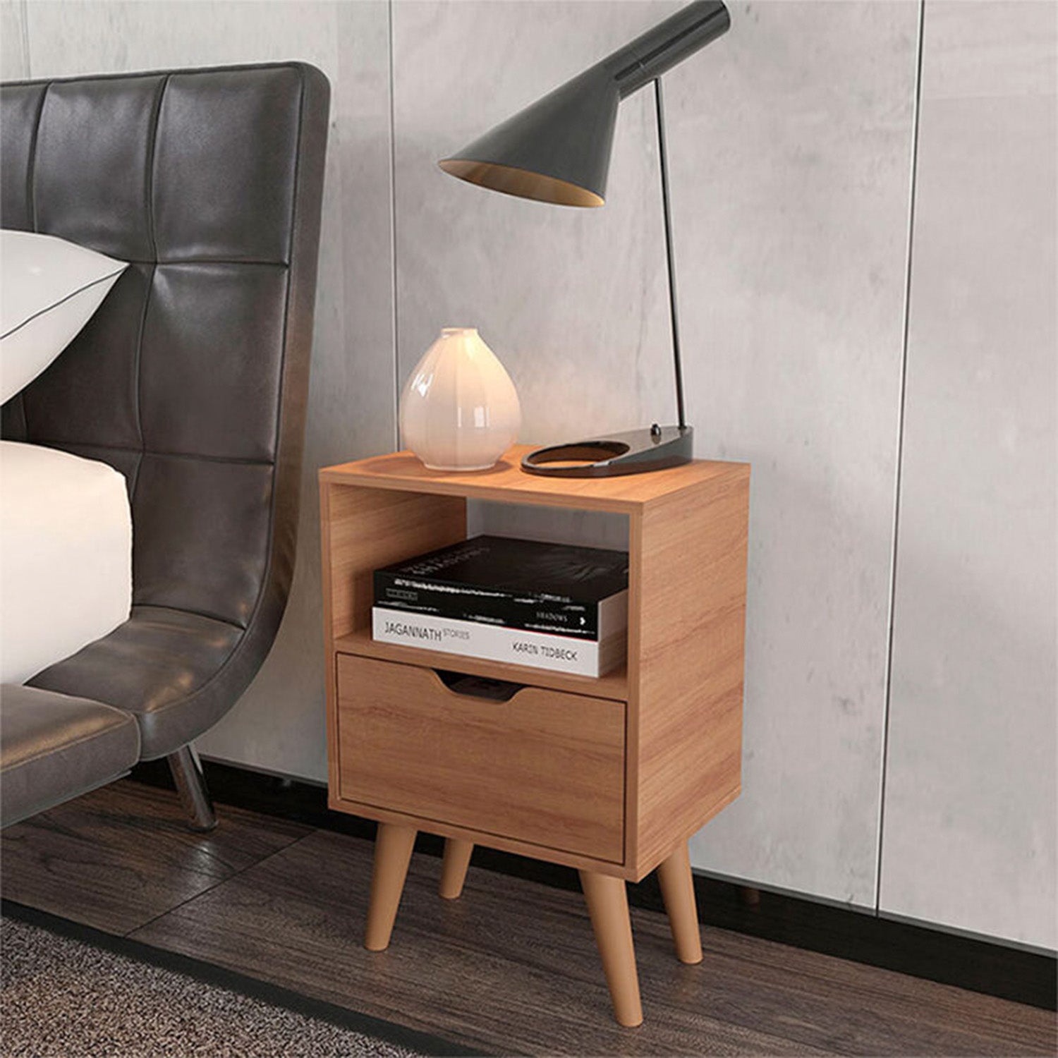 Combo 2 Mesas de Noche Essen Almendra 25.8x54cm con Un Cajon y un Compartimiento