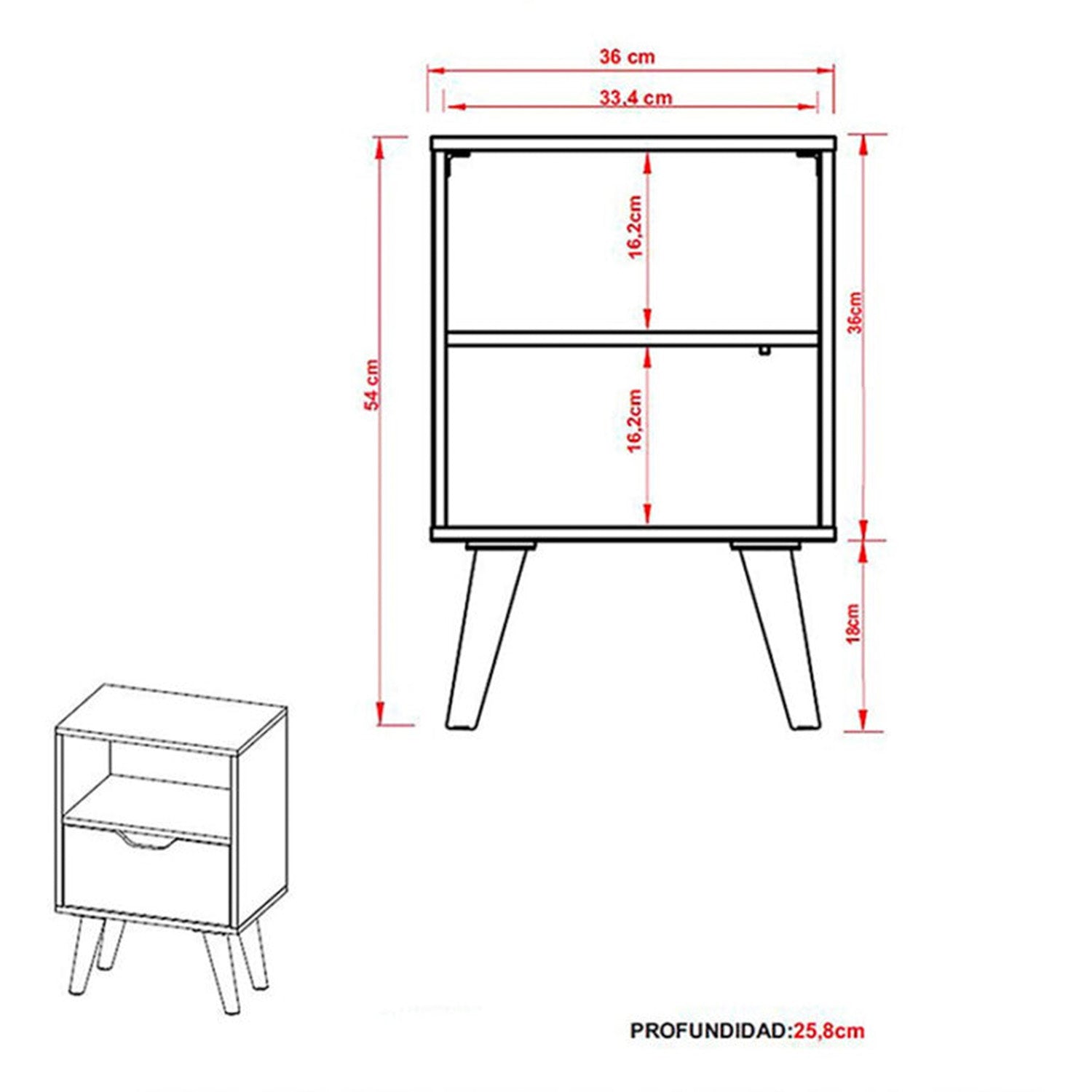 Combo 2 Mesas de Noche Essen Blanco 25.8x54cm con Un Cajon y un Compartimiento