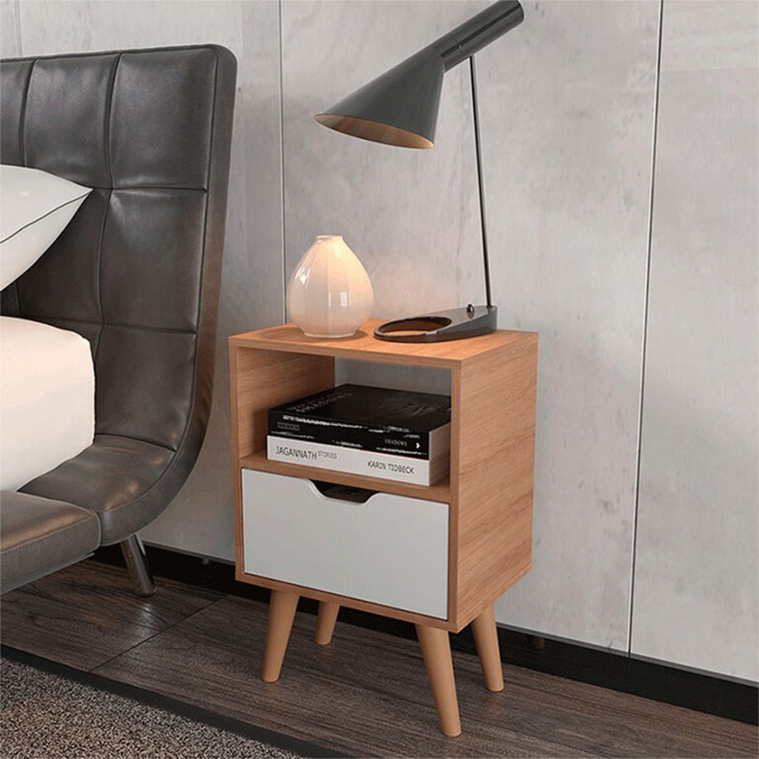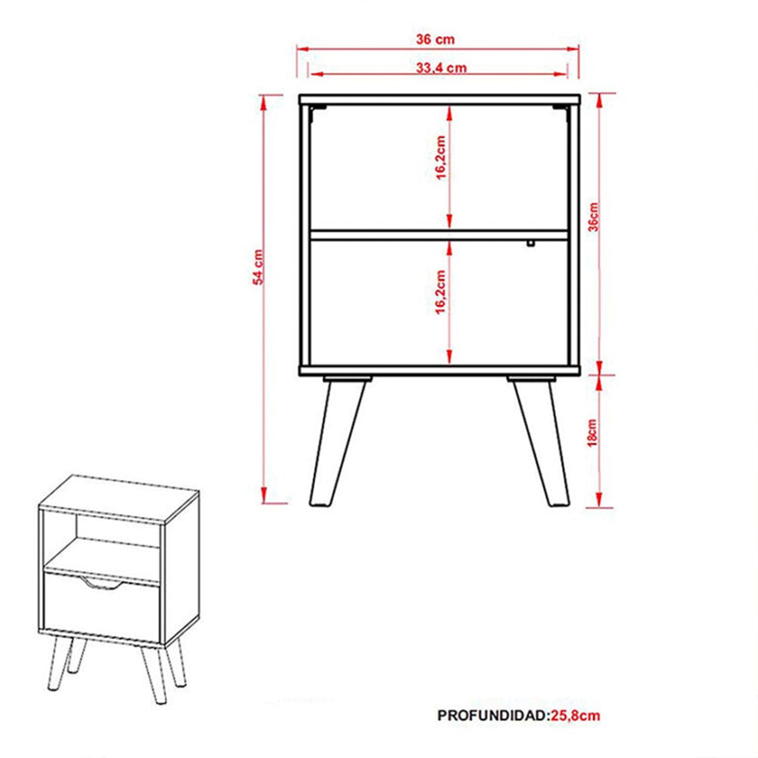 Combo 2 Mesas de Noche Essen Blanco Almendra 25.8x54cm con Un Cajon y un Compartimiento
