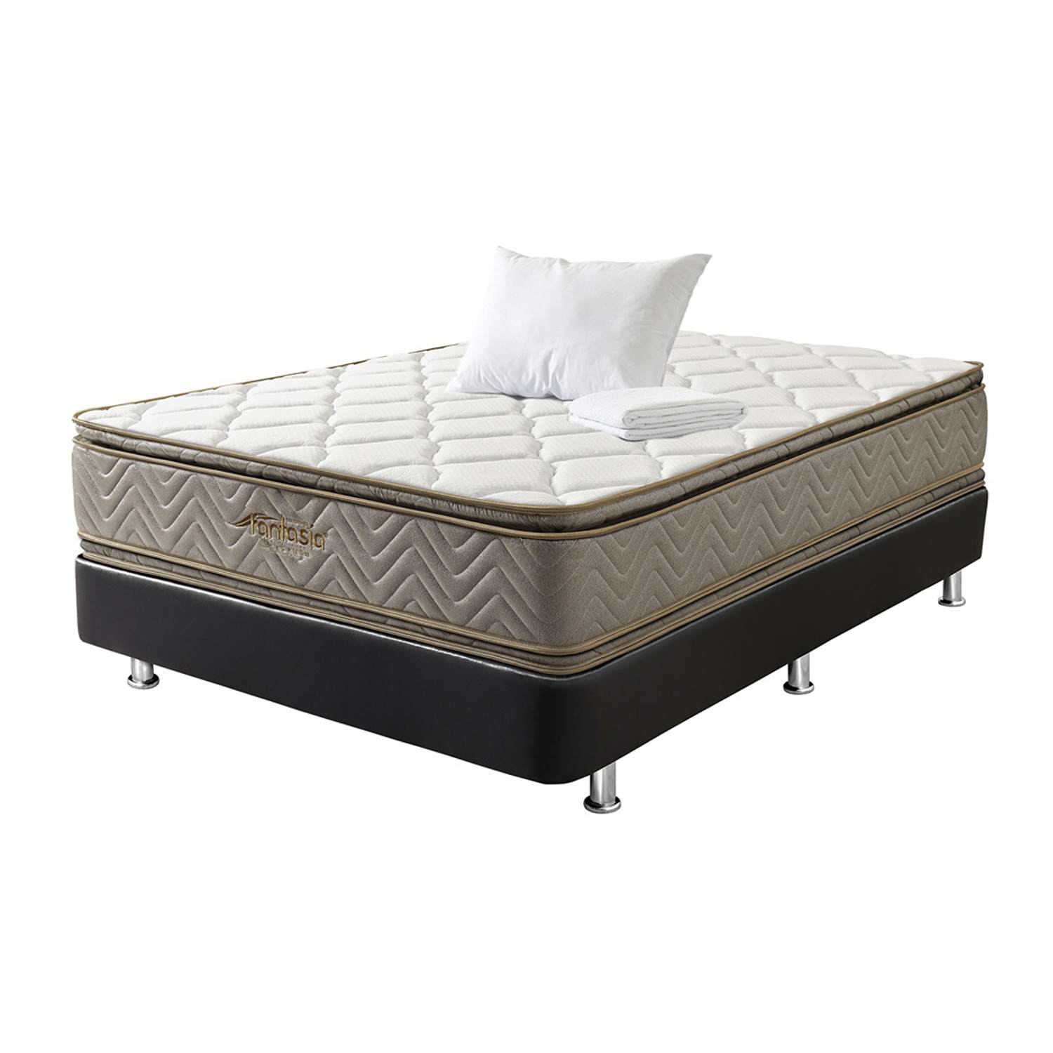 Combo Base Cama y Colchón Galaxy Negro Sencilla 100 cm con Una Almohada y Protector