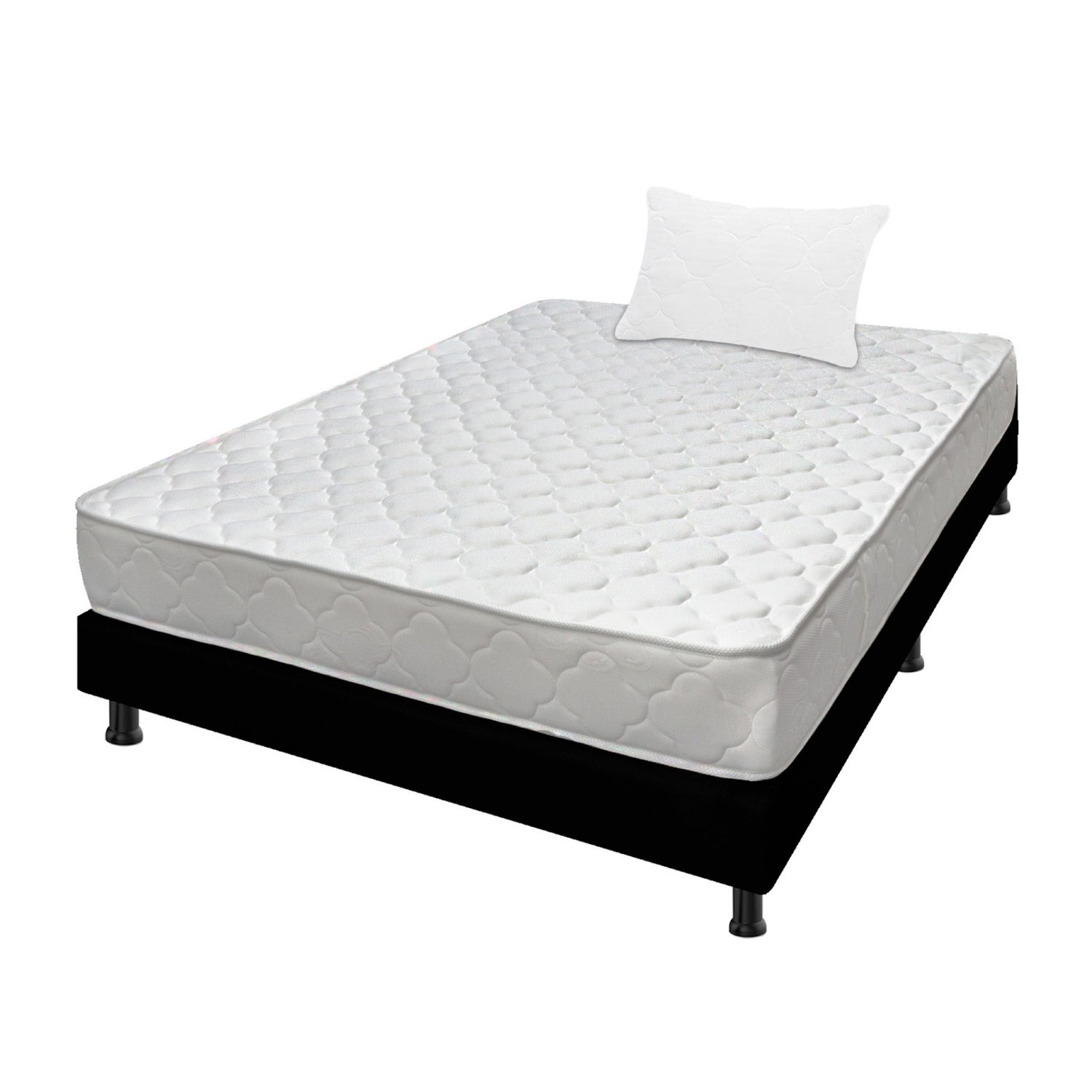 Combo Base Cama y Colchón Macizo Blanco y Negro Sencillo 100 X 190 Cm Firmeza Firme Doble Faz