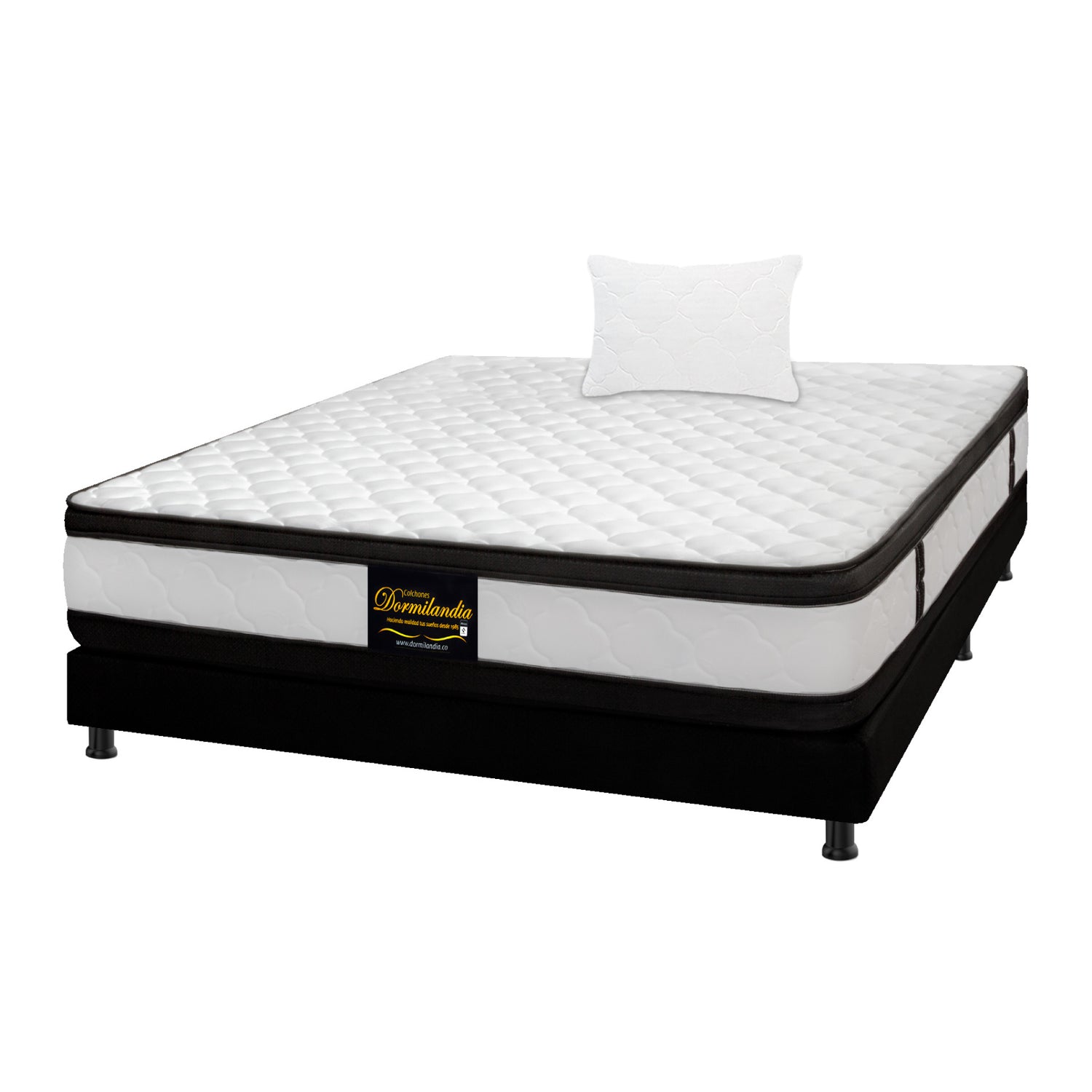 Combo Base Cama y Colchón Malta Blanco y Negro Sencillo 100 X 190 Cm Firmeza Firme Doble Faz