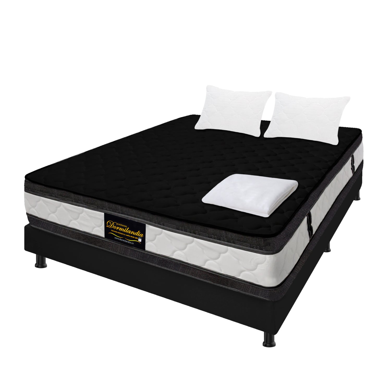 Combo Base Cama y Colchón Marshall Negro Semidoble 120 X 190 Cm Firmeza Medio Doble Faz