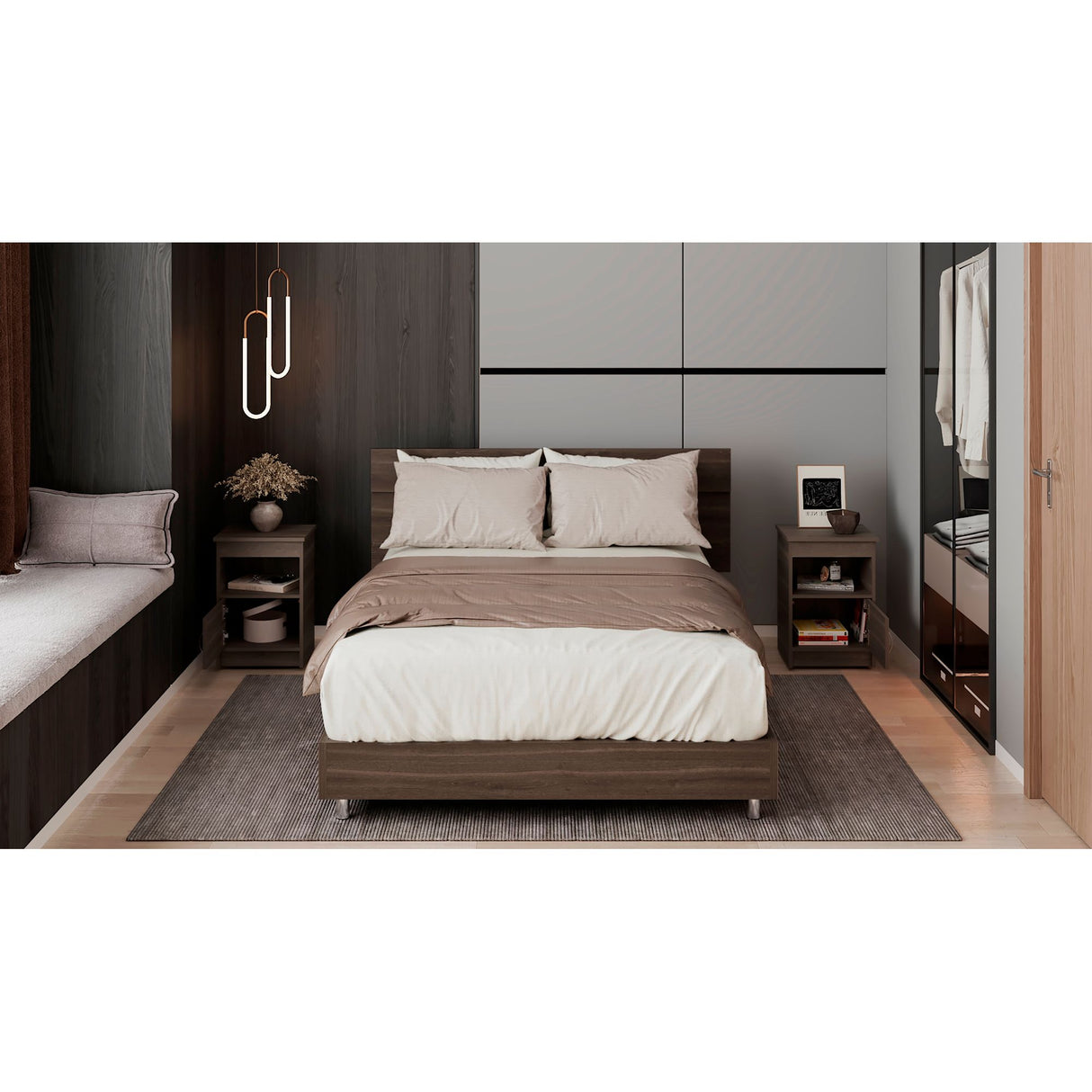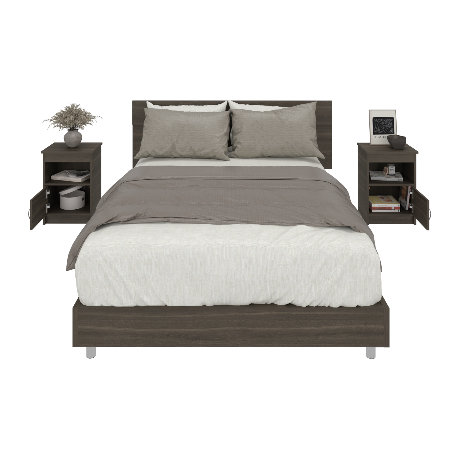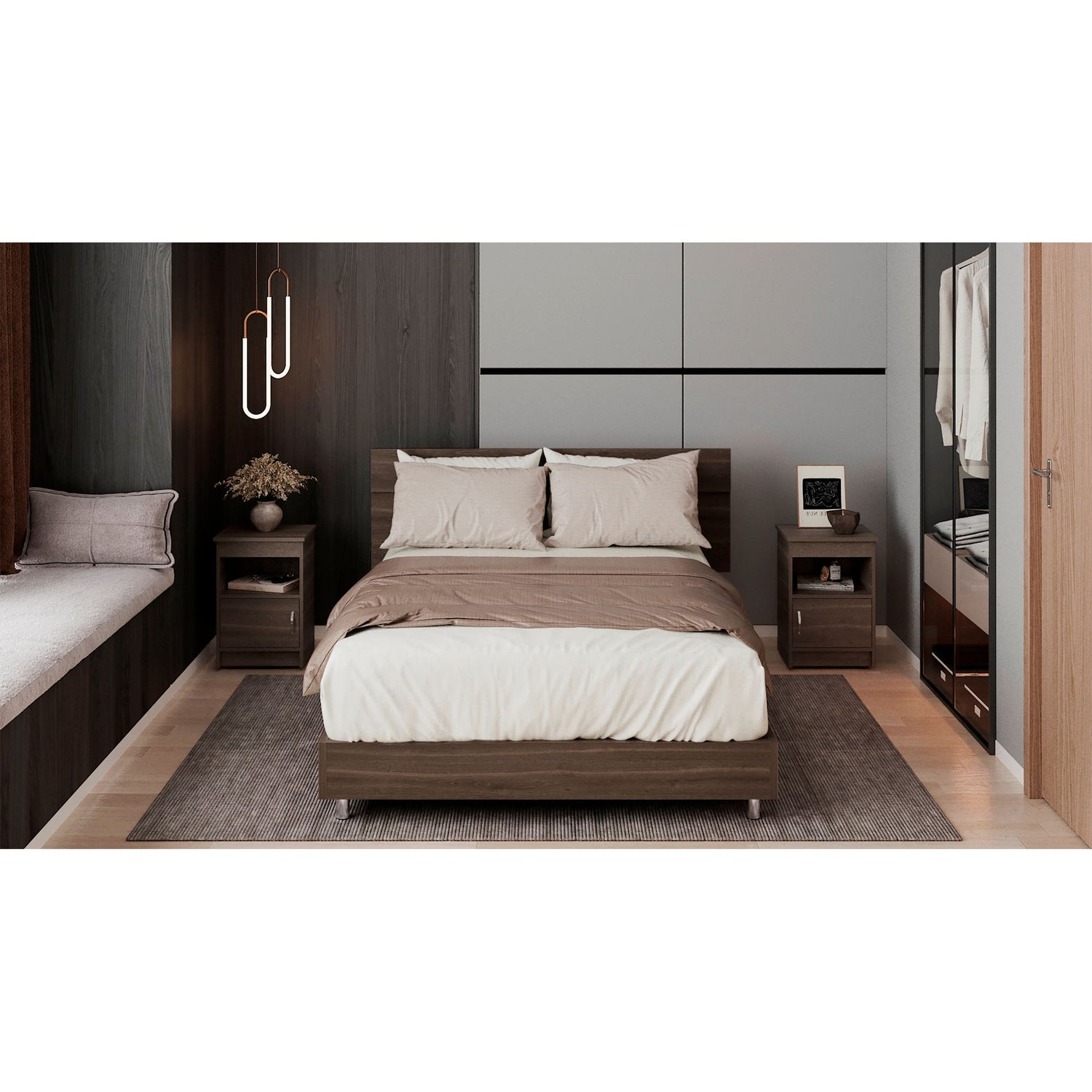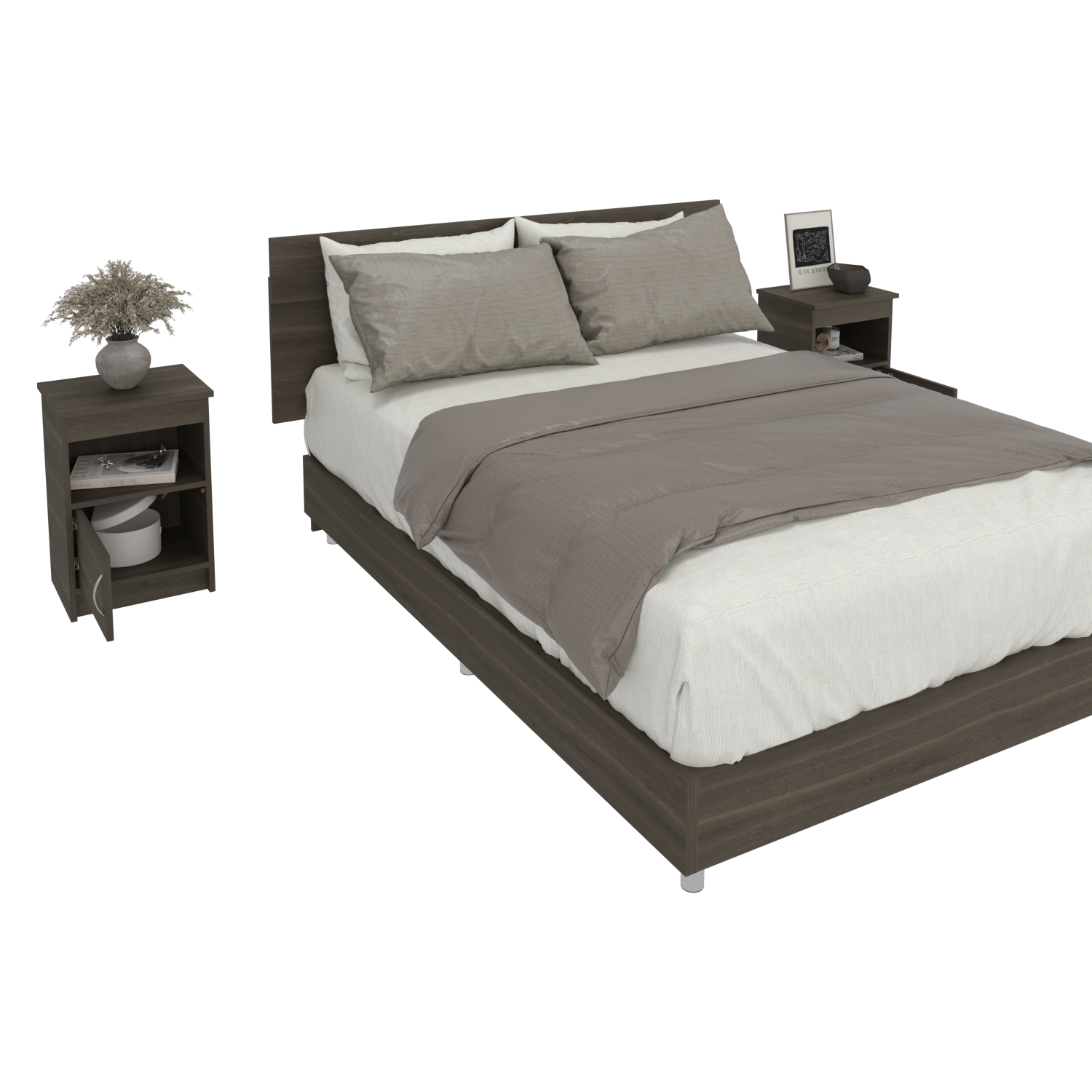 Combo Cabecero Lisboa Milan 90.2x158.6cm con Dos Mesas de Noche Para cama Doble