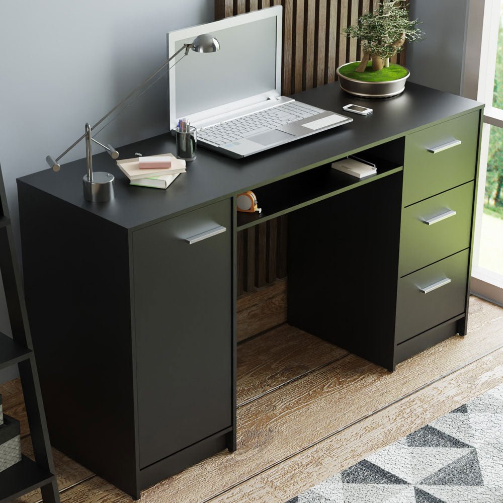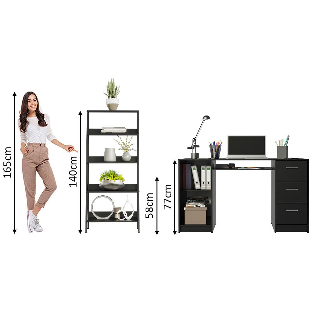 Combo Escritorio y Biblioteca Alaska Negro 136x77cm con Tres Cajones y con Archivador