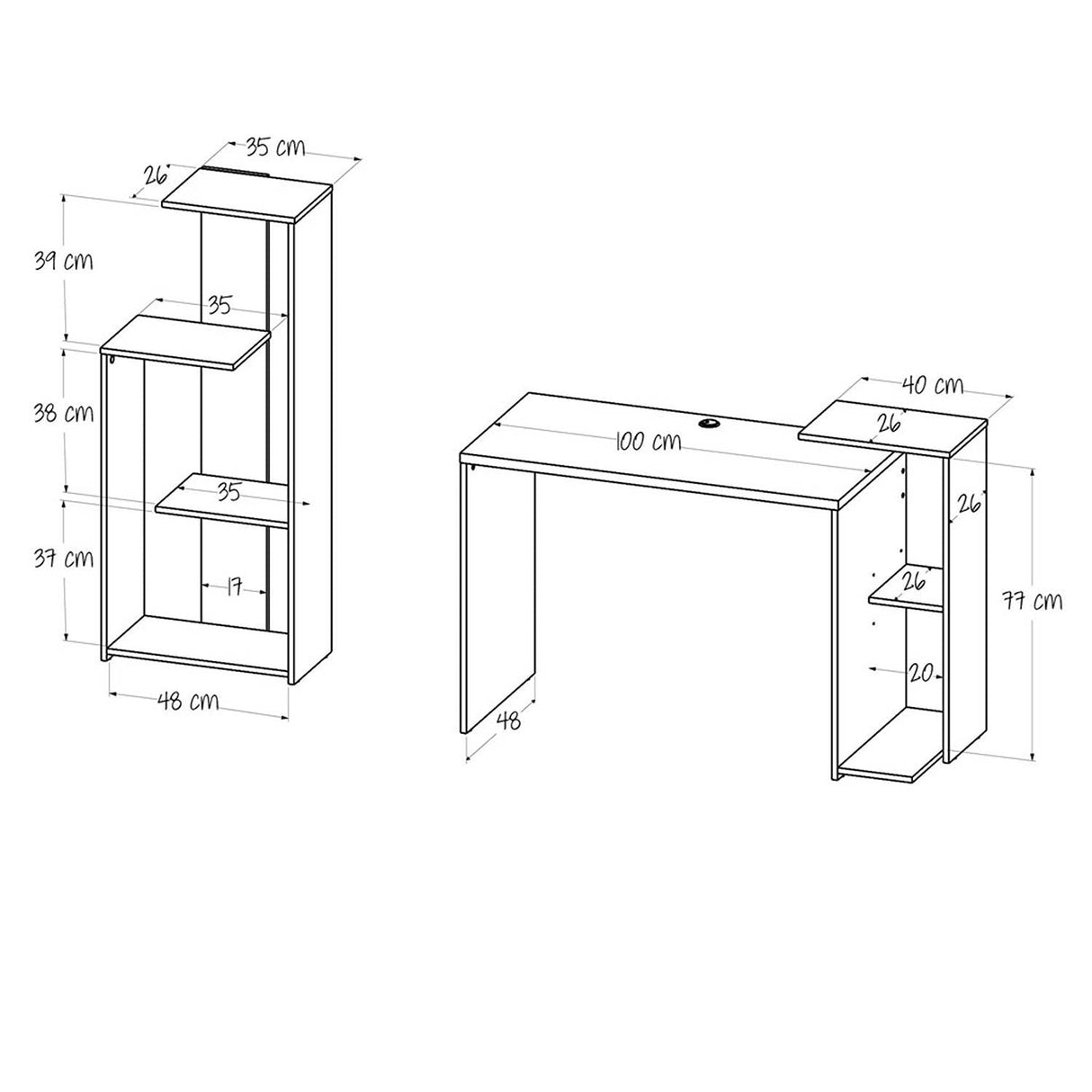 Combo Escritorio y Biblioteca Z Niebla 121x82cm sin Cajones y con Organizador de Libros