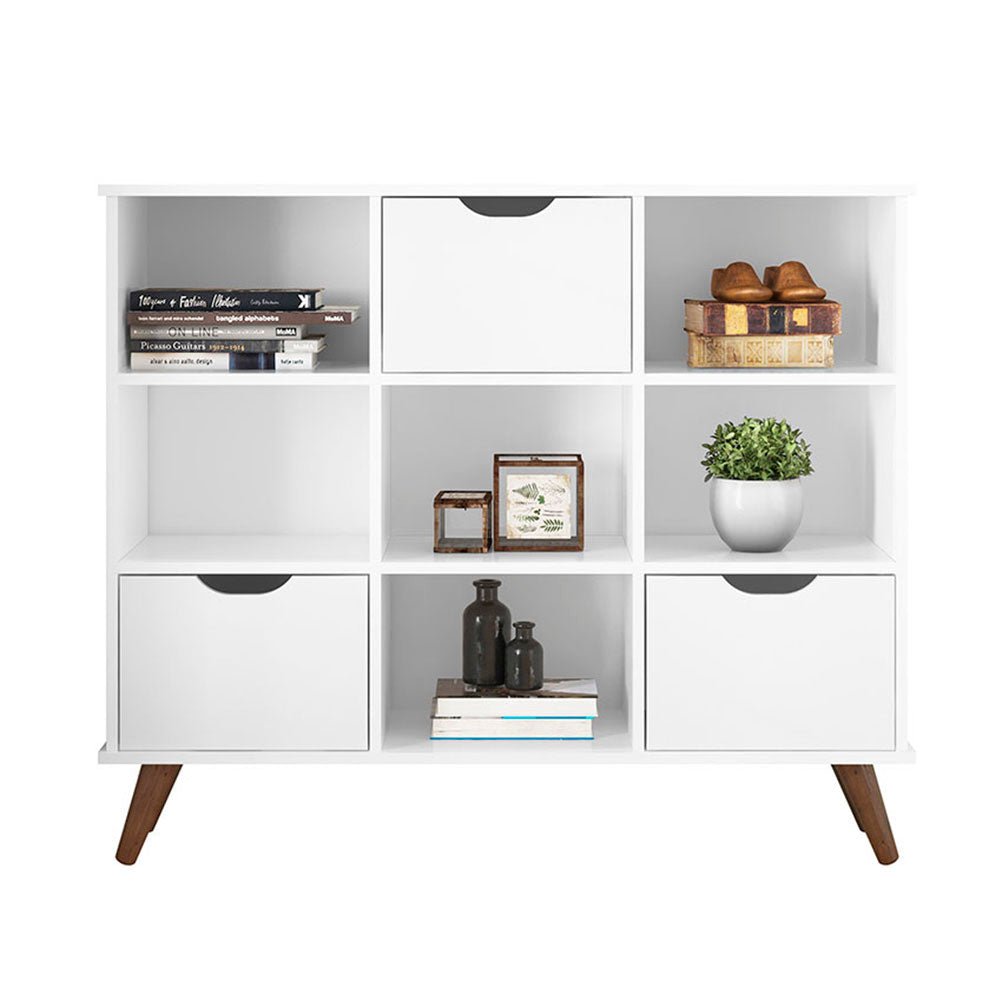 Incluye: Estante - Nueve (9) compartimientos - Cuatro (4) patas en madera maciza - Kit de herrajes - Manual de armado Kit de cajones - Tres (3) cajones blancos - Kit de herrajes - Manual de armado