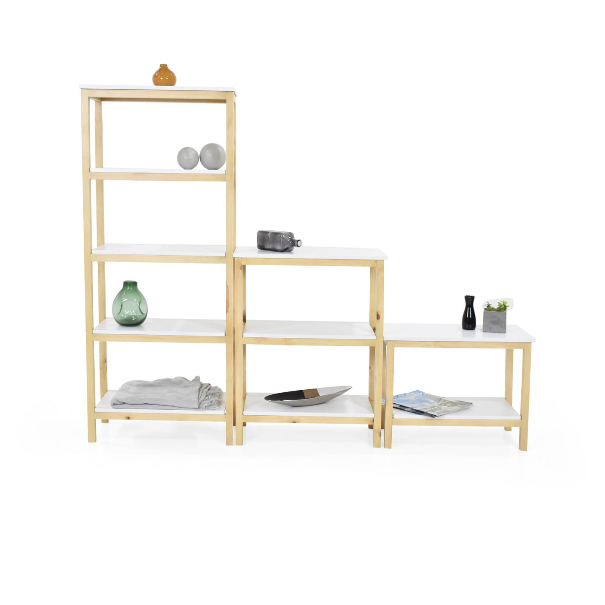 Combo Estantería Brooklyn Blanco y Matiz Natural 186x146cm con Diez Entrepaños y Una Mesa Auxiliar