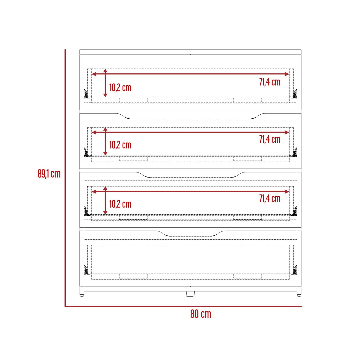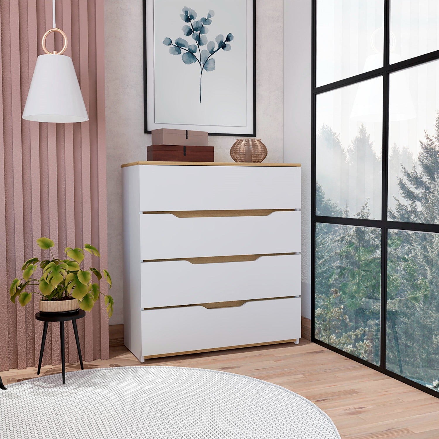 Cómoda Bi Color Blanco 80x89.1cm con 4 Cajones